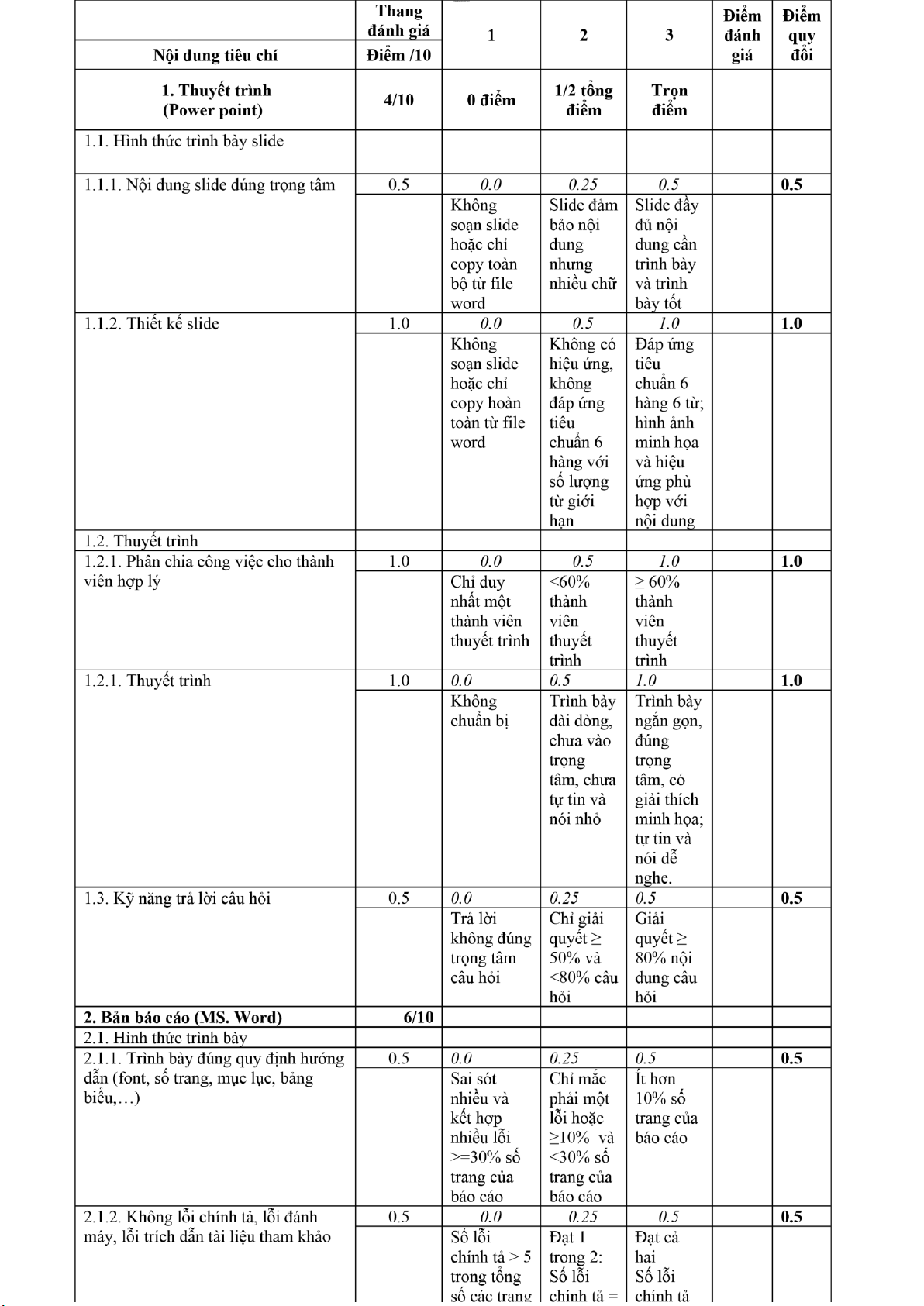 Đánh giá theo thang điểm 10. Làm tròn đến 2 chữ số thập phân. Khoảng cách thang điểm nhỏ nhất là 0,25 điểm. 4.2.