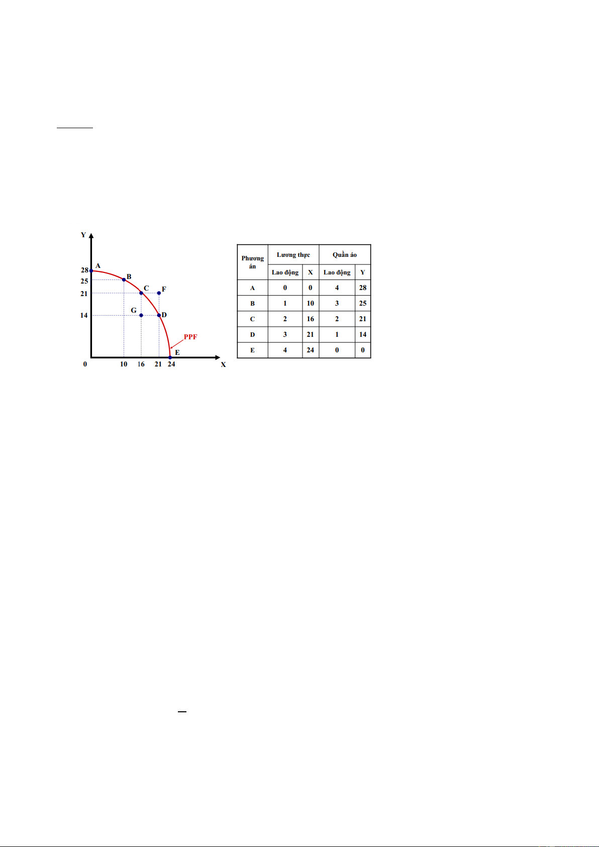 ( những phương án tối ưu). Còn những điểm nằm ngoài đường PPF là những phương án sản xuất