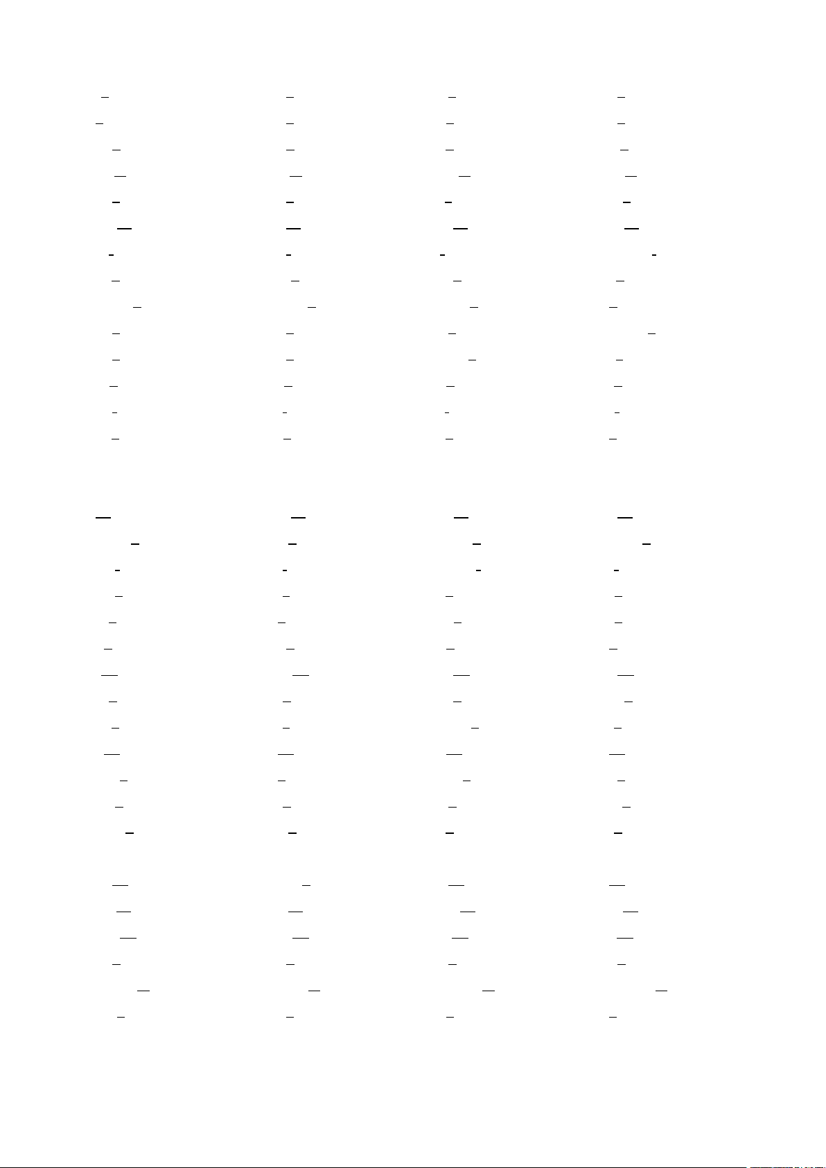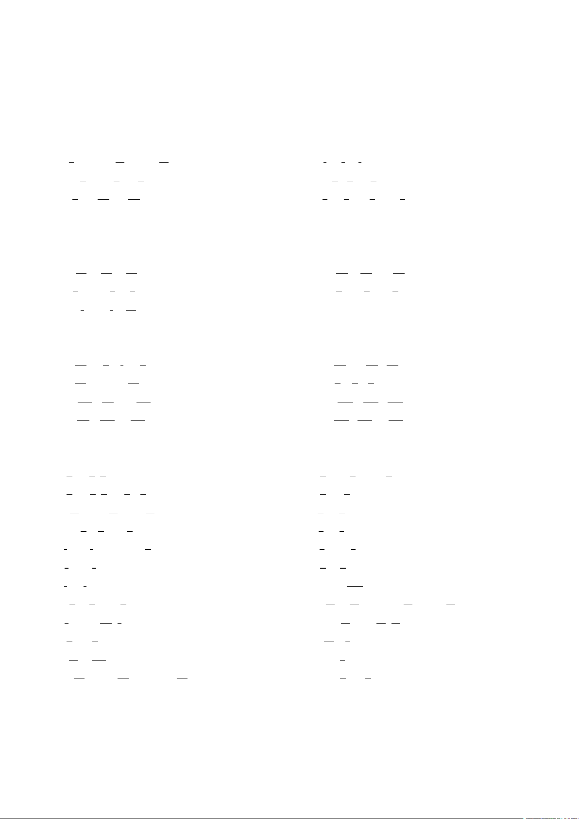Đáp án: D (âm /b/ luôn bị nuốt sau âm /m/) 16. A. nation B. national C. nationality D. international / ˈneɪʃən / / ˈnæʃnəl / / ˌnæʃəˈnælɪti / / ˌɪntəˈnæʃənəl / Đáp án: A 17. A. bank B. paper C. explain D. same / bæŋk / / ˈpeɪpə(r) / / ɪksˈpleɪn / / seɪm / Đáp án: A 18. A. fun B. sun C. supermarket D. lunch / fʌn / / sʌn / / ˈsuːpəmɑːkɪt / / ˈlʌntʃ / Đáp án: C 19. A. different B. literature C. tidy D. finger / ˈdɪfrənt / / ˈlɪtrətʃə(r) / / ˈtaɪdi / / ˈfɪŋɡə(r) / Đáp án: C 20. A. cat B. fat C. father D. apple / kæt / / fæt / / ˈfɑːðə(r) / / ˈæpəl / Đáp án: C Exercise 3: 1. A. easy B. meaning C. bread D. heat / ˈiːzi / / ˈmiːnɪŋ / / bred / / hiːt / Đáp án: C 2. A. family B. try C. happy D. lovely / ˈfæməli / / ˈtraɪ / / ˈhæpi / / ˈlʌvli / Đáp án: B 3. A. smile B. life C. beautiful D. like / smaɪl / / laɪf / / ˈbjuːtəfəl / / ˈlaɪk / Đáp án: C 4. A. small B. tall C. favorite D. fall / smɔːl / / tɔːl / / ˈfeɪvərət / / fɔːl / Đáp án: C 5. A. black B. apple C. gram D. fall / blæk / / ˈæpəl / / ɡræm / / fɔːl / Đáp án: D 6. A. dozen B. bottle C. soccer D. orange / ˈdʌzən / / ˈbɒtəl / / ˈsɒkə(r) / / ˈɒrɪndʒ / Đáp án: A 7. A. round B. shoulder C. mouth D. household / ˈraʊnd / / ˈʃəʊldə(r) / / maʊθ / / ˈhaʊshəʊld / Đáp án: B 8. A. money B. ton C. month D. shop / ˈmʌni / / tʌn / / mʌnθ / / ʃɒp / Đáp án: D 9. A. chest B. lemonade C. packet D. tent / tʃest / / ˌleməˈneɪd / / ˈpækɪt / / tent / Đáp án: C 10. A. champagne B. chaos C. scheme D. chemist / ʃæmˈpeɪn / / ˈkeɪɒs / / skiːm / / ˈkemɪst / Đáp án: A 11. A. islander B. alive C. vacancy D. habitat / ˈaɪləndə[r] / / əˈlaɪv / / ˈveɪkənsi / / ˈhæbɪtæt / Đáp án: D 12. A. stone B. top C. pocket D. modern / stəʊn / / tɒp / / ˈpɒkɪt / / ˈmɒdən / Đáp án: A 13. A. volunteer B. trust C. fuss D. judge / ˌvɒlənˈtɪə(r) / / trʌst / / fʌs / / dʒʌdʒ / Đáp án: A 14. A. gossip B. gentle C. gamble D. garage / ˈɡɒsɪp / / ˈdʒentəl / / ˈɡæmbəl / / ˈɡærɑːʒ / Đáp án: B 15. A. daunt B. astronaut C. vaulting D. aunt / dɔːnt / / ˈæstrənɔːt / / ˈvɔːltɪŋ / / ɑːnt / Đáp án: D 16. A. clear B. treasure C. spread D. dread / klɪə[r] / / ˈtreʒə / / spred / / dred / Đáp án: A 17. A. about B. shout C. wounded D. count / əˈbaʊt / / ʃaʊt / / ˈwuːndɪd / / kaʊnt / Đáp án: C 18. A. none B. dozen C. youngster D. home / nʌn / / ˈdʌzən / / ˈjʌŋstə / / həʊm / Đáp án: D 19. A. crucial B. partial C. material D. financial / ˈkruːʃəl / / ˈpɑːʃəl / / məˈtɪərɪəl / / faɪˈnænʃəl / Đáp án: C 20. A. major B. native C. sailor D. applicant / ˈmeɪdʒə(r) / / ˈneɪtɪv / / ˈseɪlə(r) / / ˈæplɪkənt / Đáp án: D
