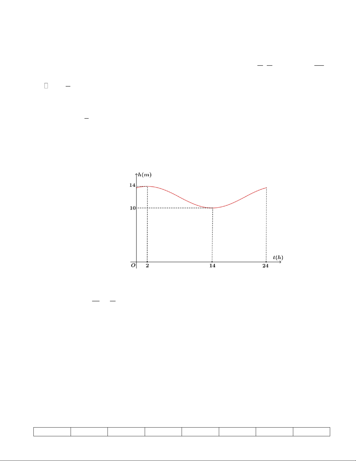 Câu 3. Sự thay đổi chiều cao của mực nước tại một cảng biển trong vòng 24 giờ tính từ lúc nửa đêm được mô