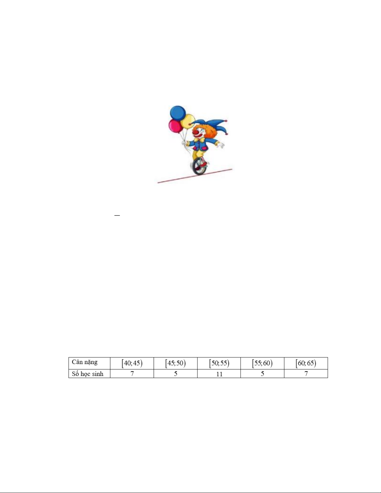 Câu 6: Cân nặng (kg) của nhóm học sinh trường THPT được tổng hợp dưới bảng sau