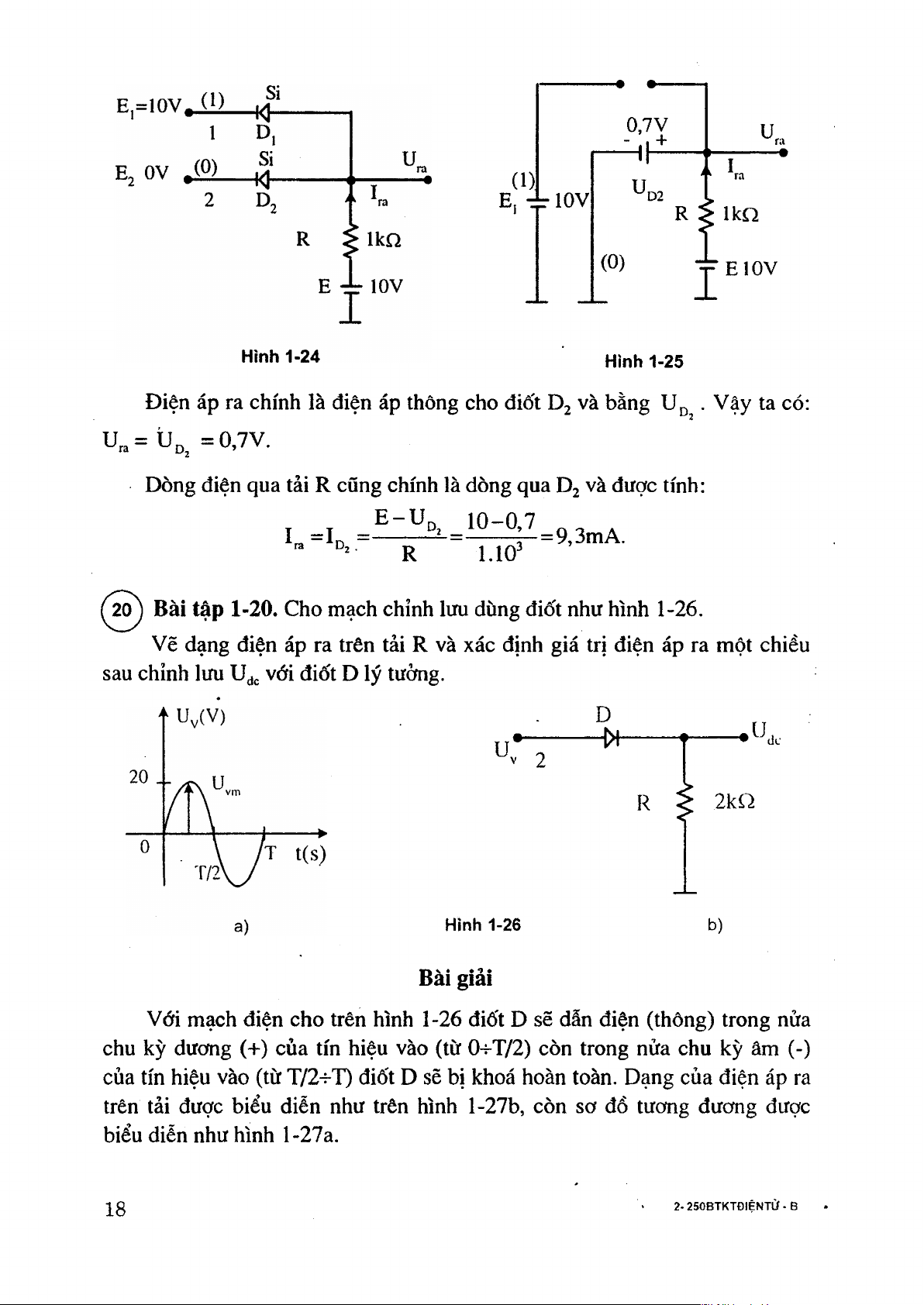 Bài tập 1-20. Cho mạch chỉnh lưu dùng điốt như hình 1-26.