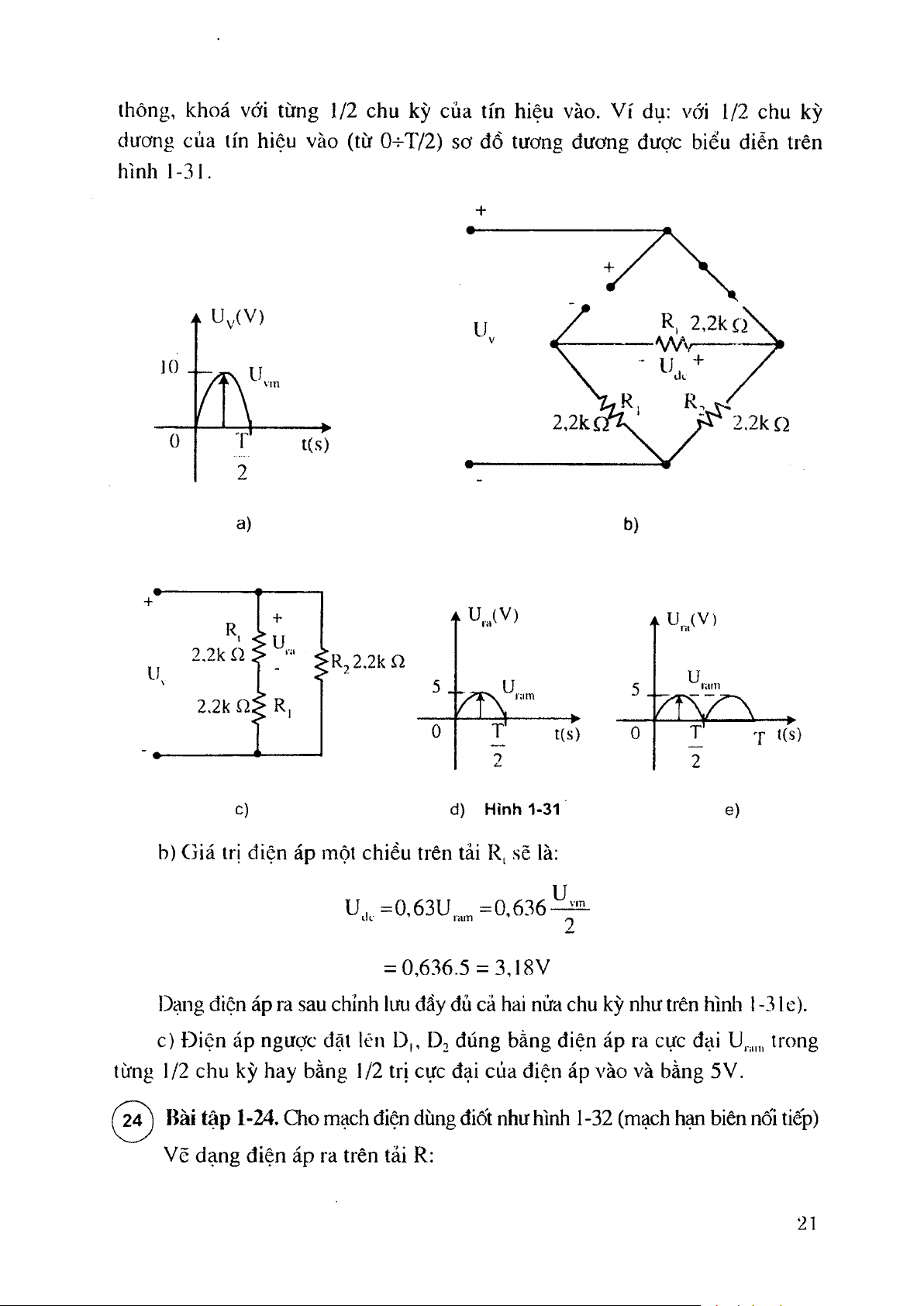 Dién áp ra mót chiéu trén tái R Hinh 1-29 duoc tính: = -0,318(U,„ - U^)