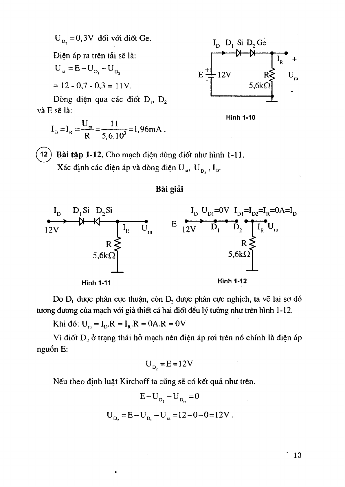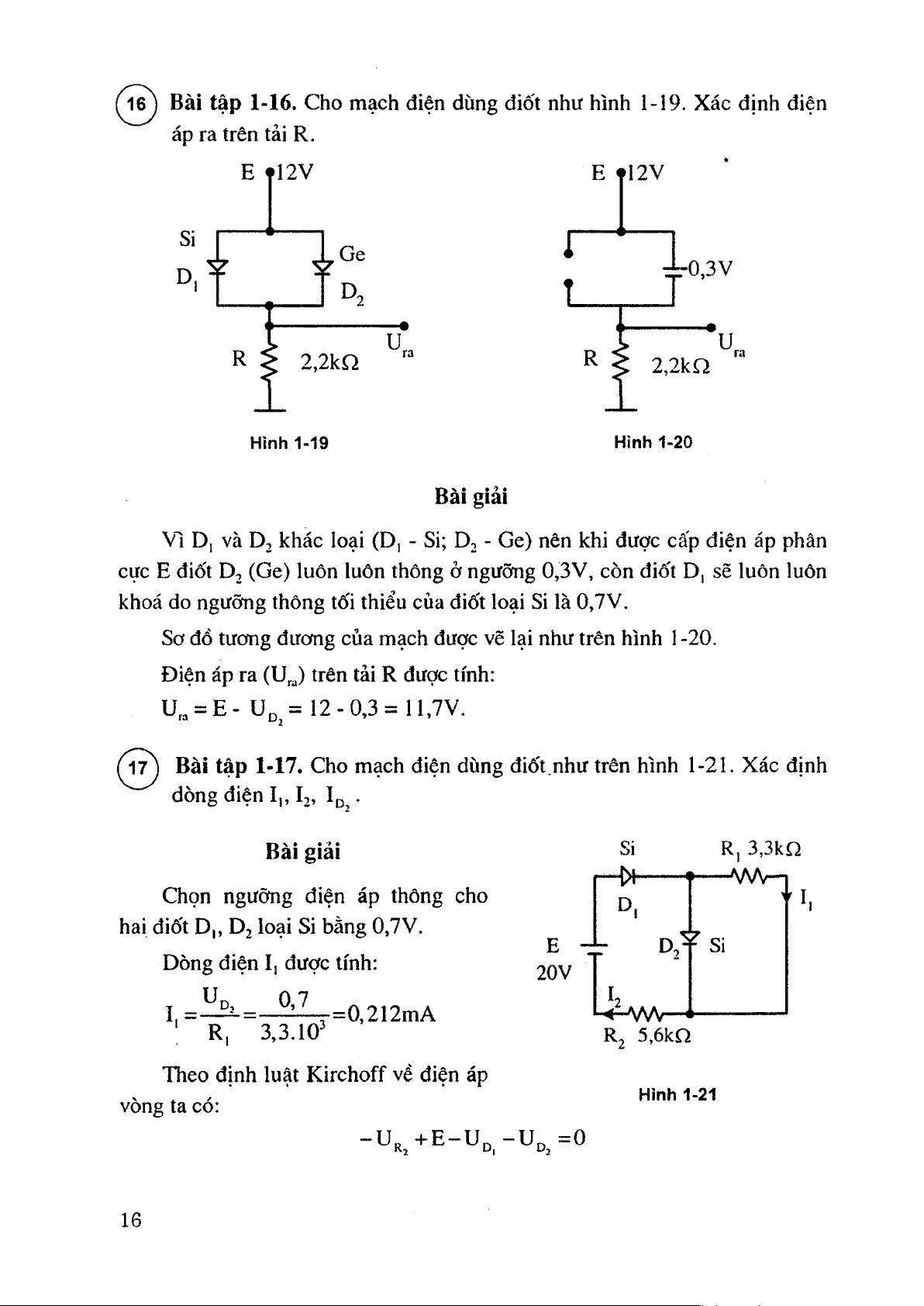 Bài tập 1-16. Cho mạch điện dùng điốt như hình 1-19. Xác định điện áp ra trên tải R. E t l 2 V 4rO,3V —• u. R ra 2,2kQ Hình 1-20 Bài giải