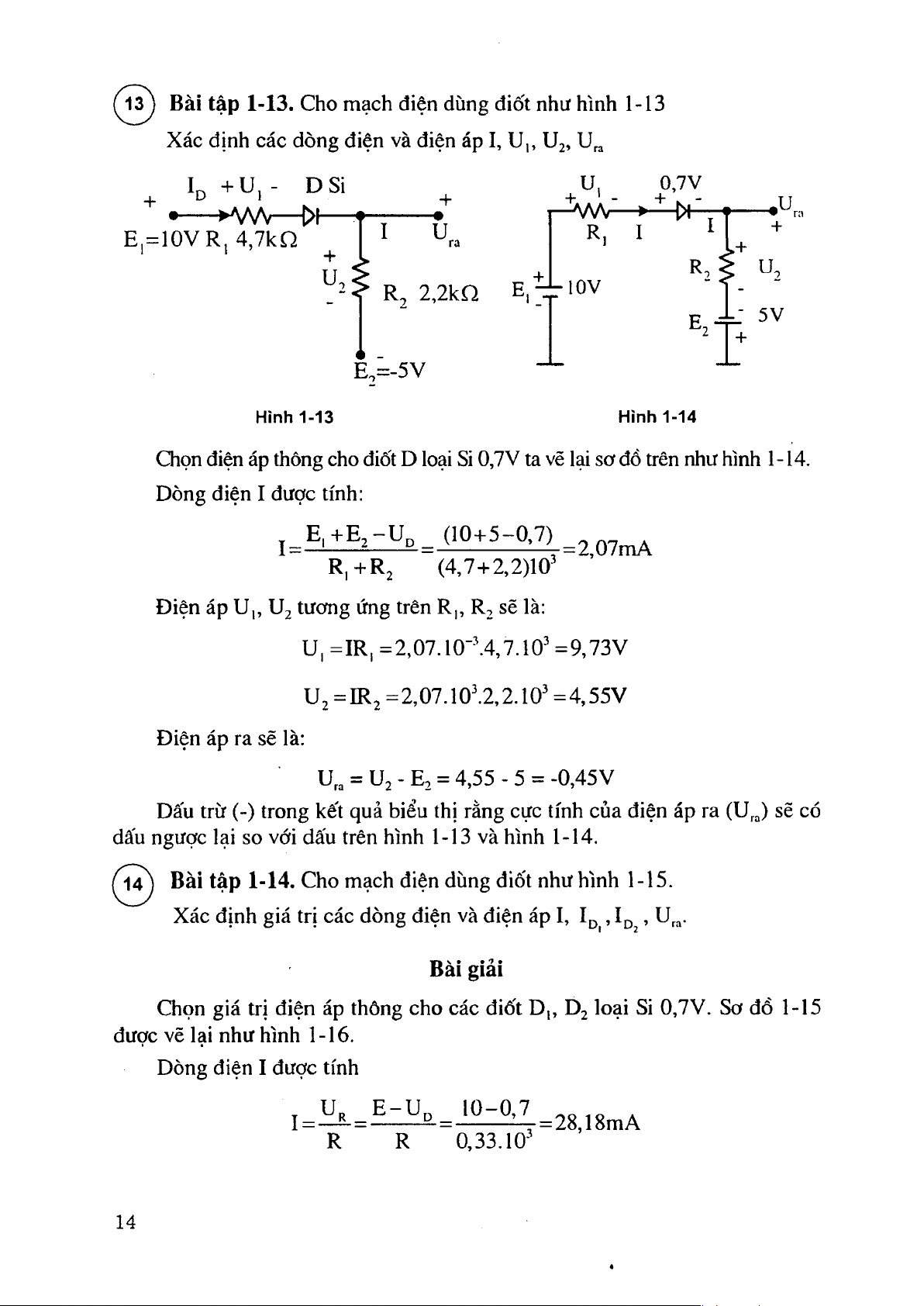 Dòng điện I| được tính: 20V u .D , 0,7 h I,= 3-=0,212mA 4-AAAr R. 3,3.10 5,6kfì
