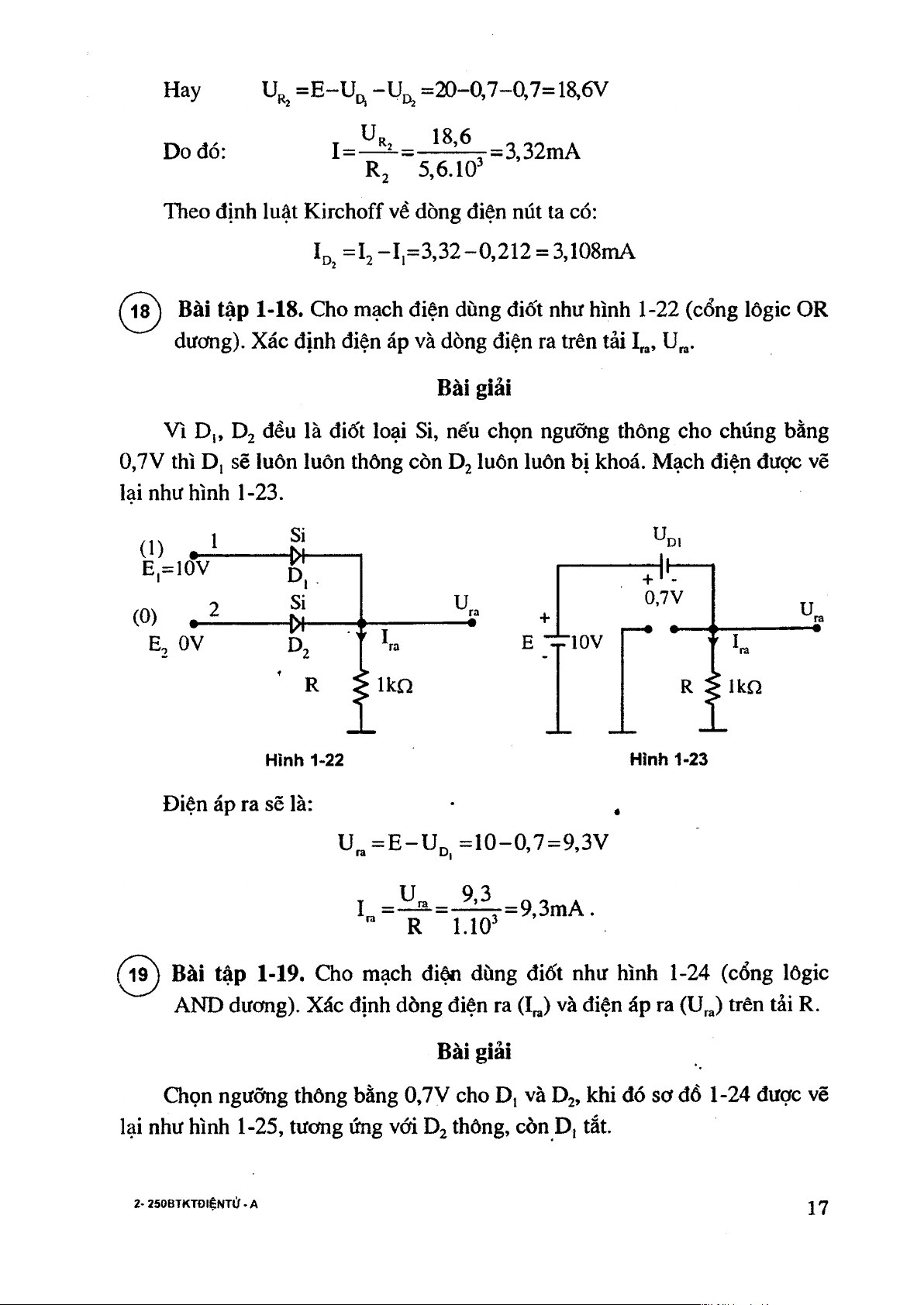 Bài tập 1-19. Cho mạch điện dùng điốt như hình 1-24 (cổng lôgic