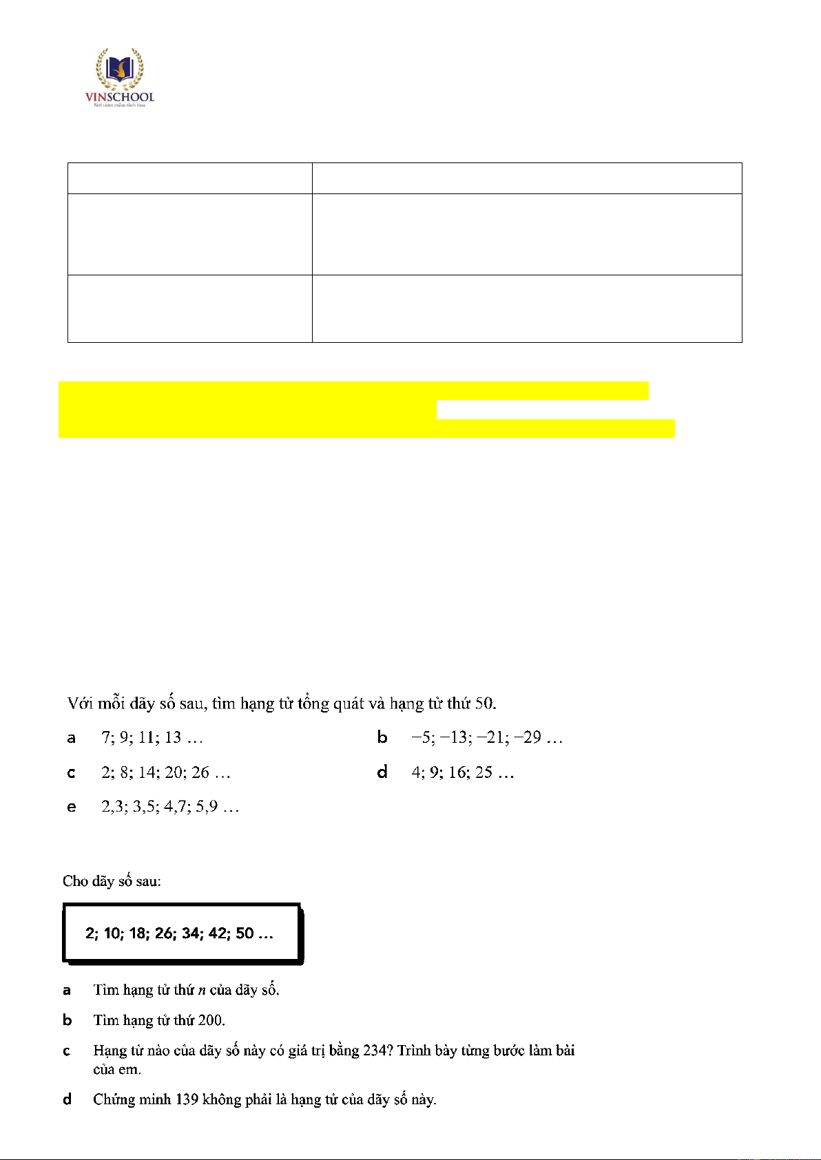 MTC 9.c: Sử dụng quy luật số hạng thứ n của dãy số để tìm một số hạng chưa biết trong dãy.
