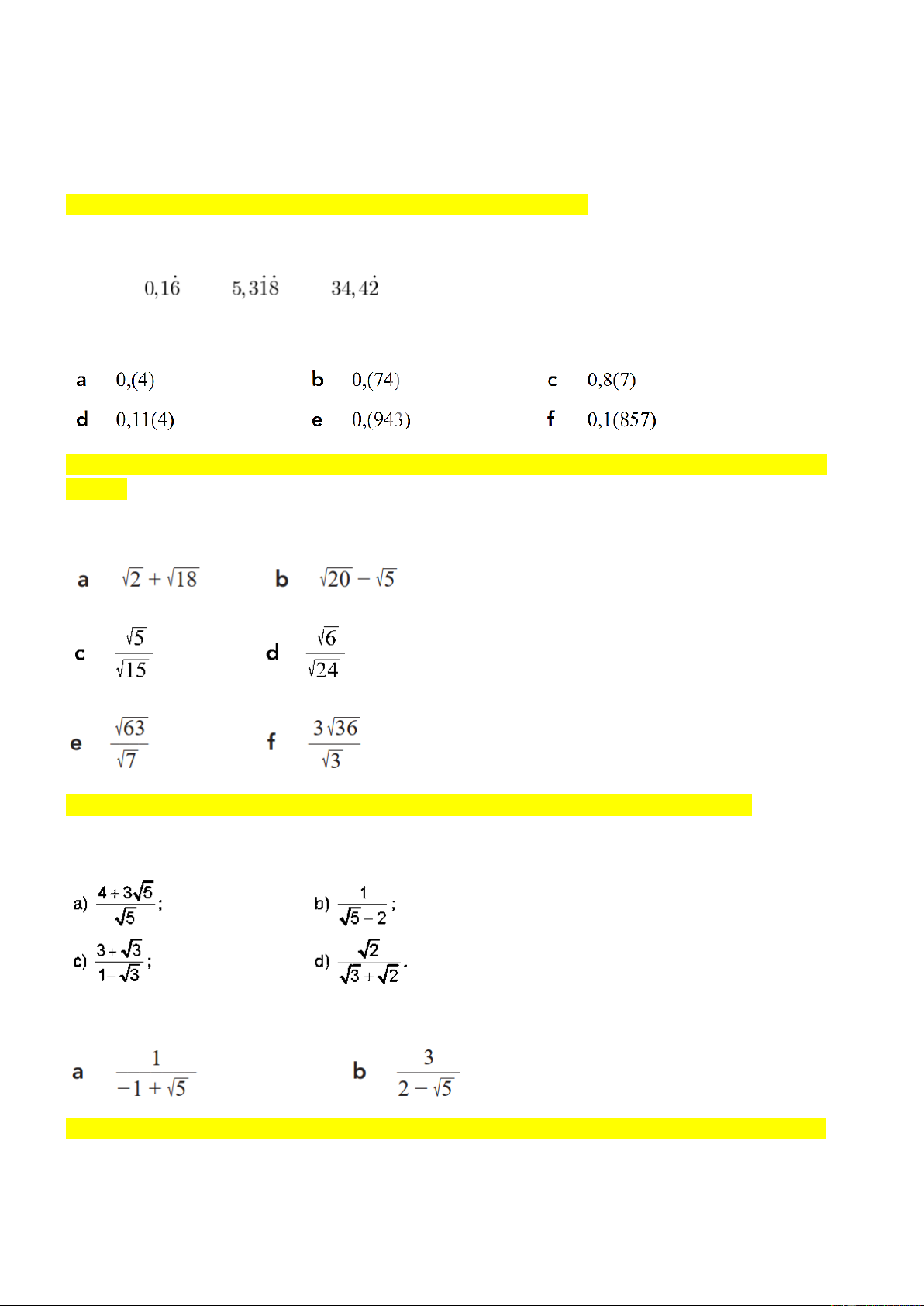 a) 2 32 − 3 50 + 6 72 . b) 12 + 4 27 − 75 : 3 . 2 16 27 4 c) 6 − +10 : 0,01 . d) + − ( − )2 2 7 4 7 2 . 9 3 25