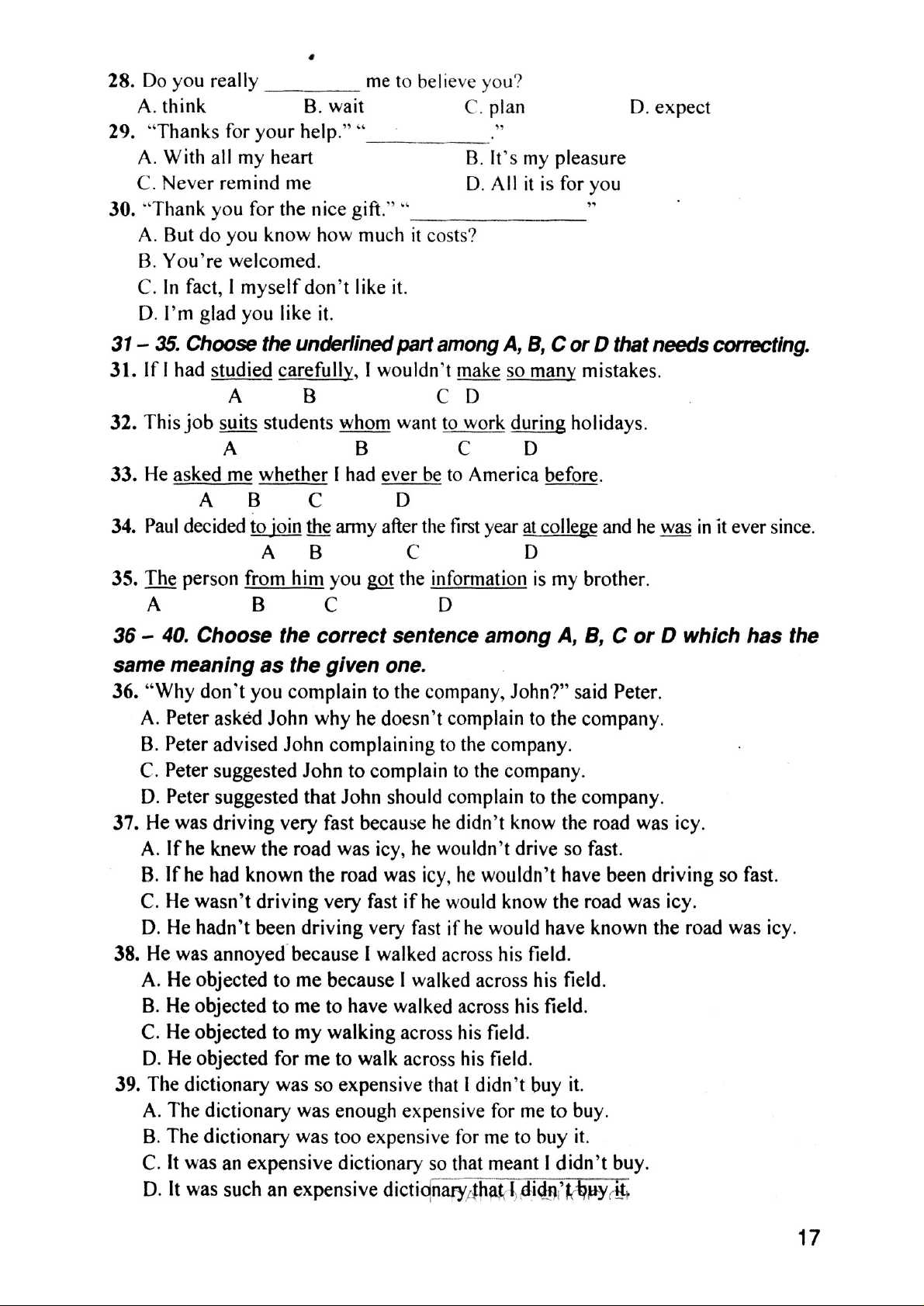 Bài kiểm tra trắc nghiệm - UNIT 40: PRACTICE 1 | Tiếng Anh 12