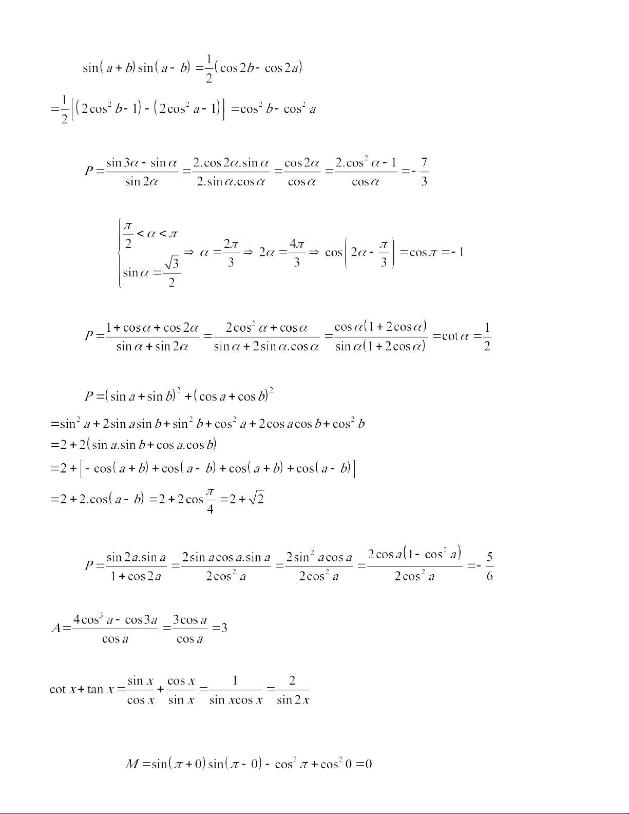 28 bài tập - Trắc nghiệm Công thức Lượng giác - File word có lời giải chi tiết Câu 1. Cho . Khi đó có giá trị bằng A. 1 B. C. D. Câu 2. Cho . Khi đó có giá trị bằng A. B. C. D. Câu 3. Cho . Khi đó có giá trị bằng A. B. C. D. Câu 4. Biểu thức