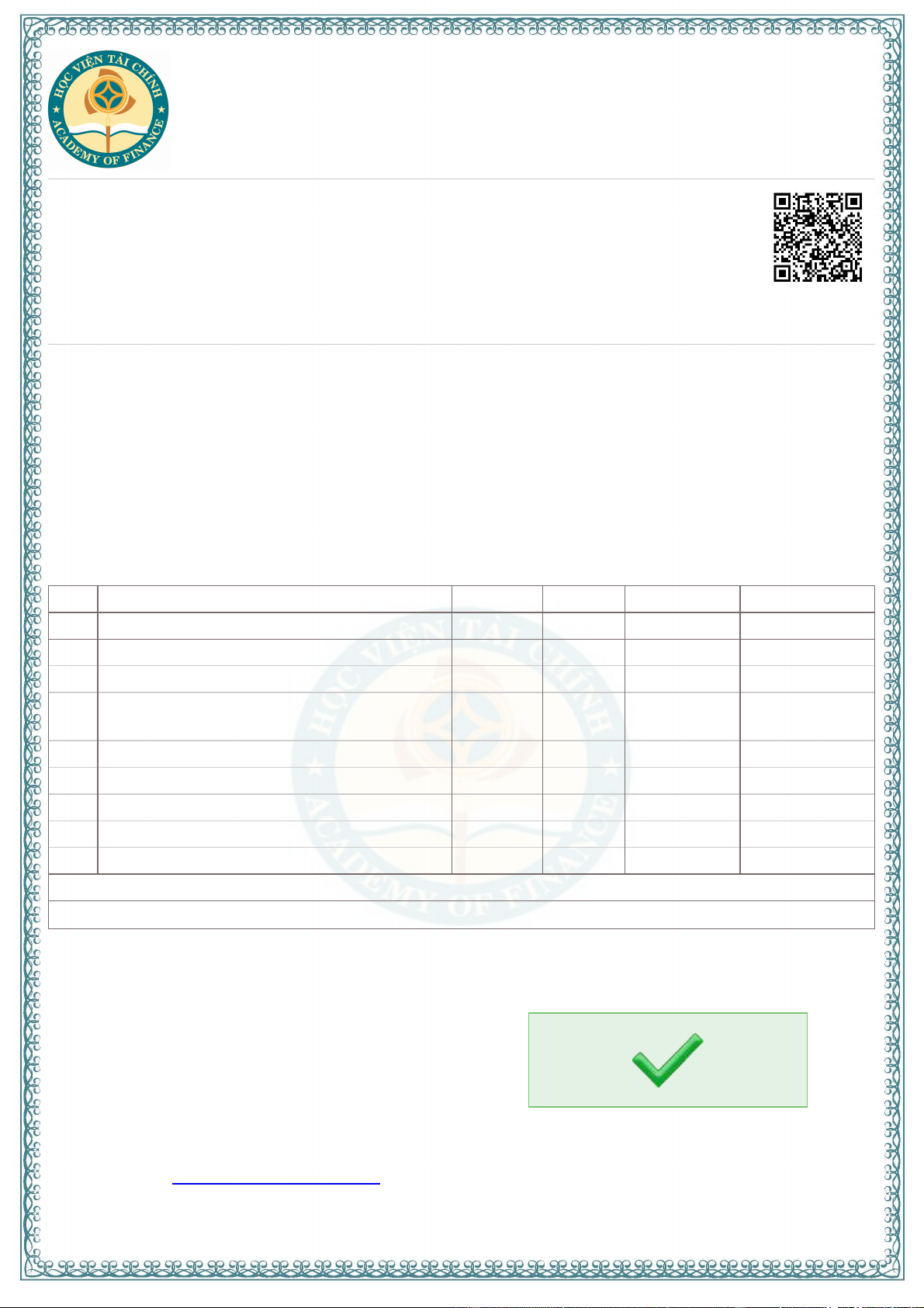 HỌC VIỆN TÀI CHÍNH Mã số thuế : 0101592465 Địa chỉ :