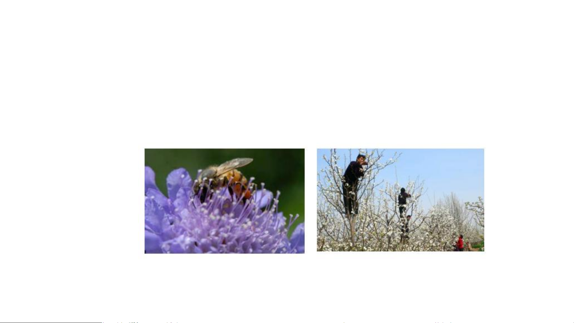 ong bị chết do thuốc trừ sâu, người nông dân phải thụ phấn cho hoa (B)