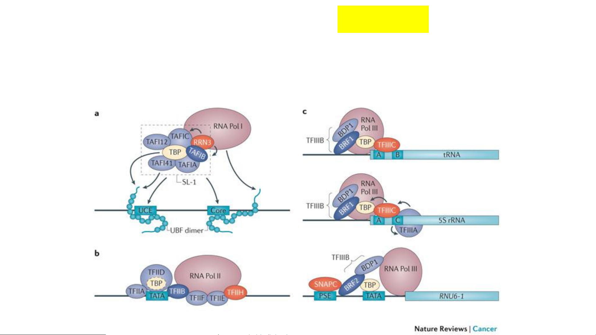 RNA pol I/II/III không tương tác trực tiếp với P mà cần hỗ trợ từ các nhân tố phiên mã cơ bản