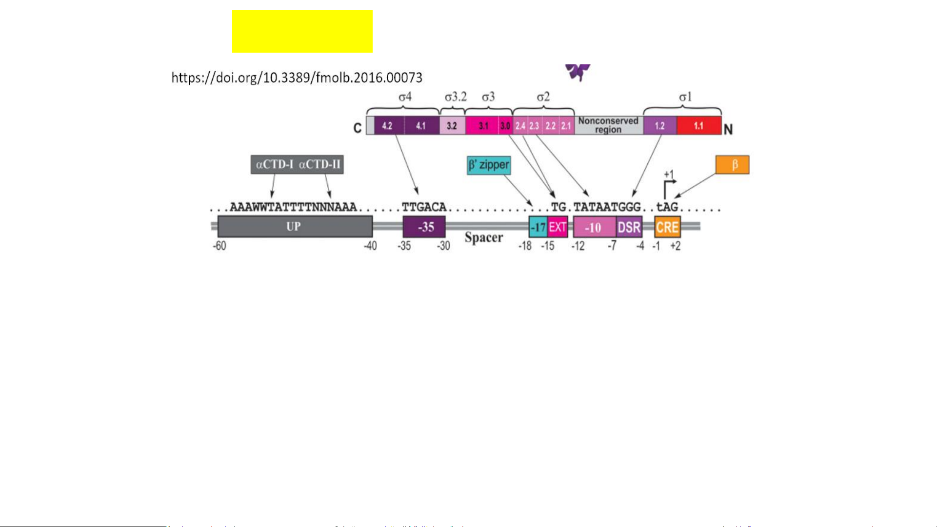 ❑ Sigma (σ) với nhiều domain khác tương tác đặc hiệu với các trình tự lõi trong cấu trúc promoter.