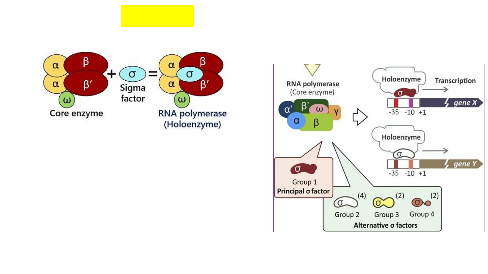 diện promoter; 1β1β’ tạo trung tâm xúc tác tổng hợp RNA; ω gắn kết.