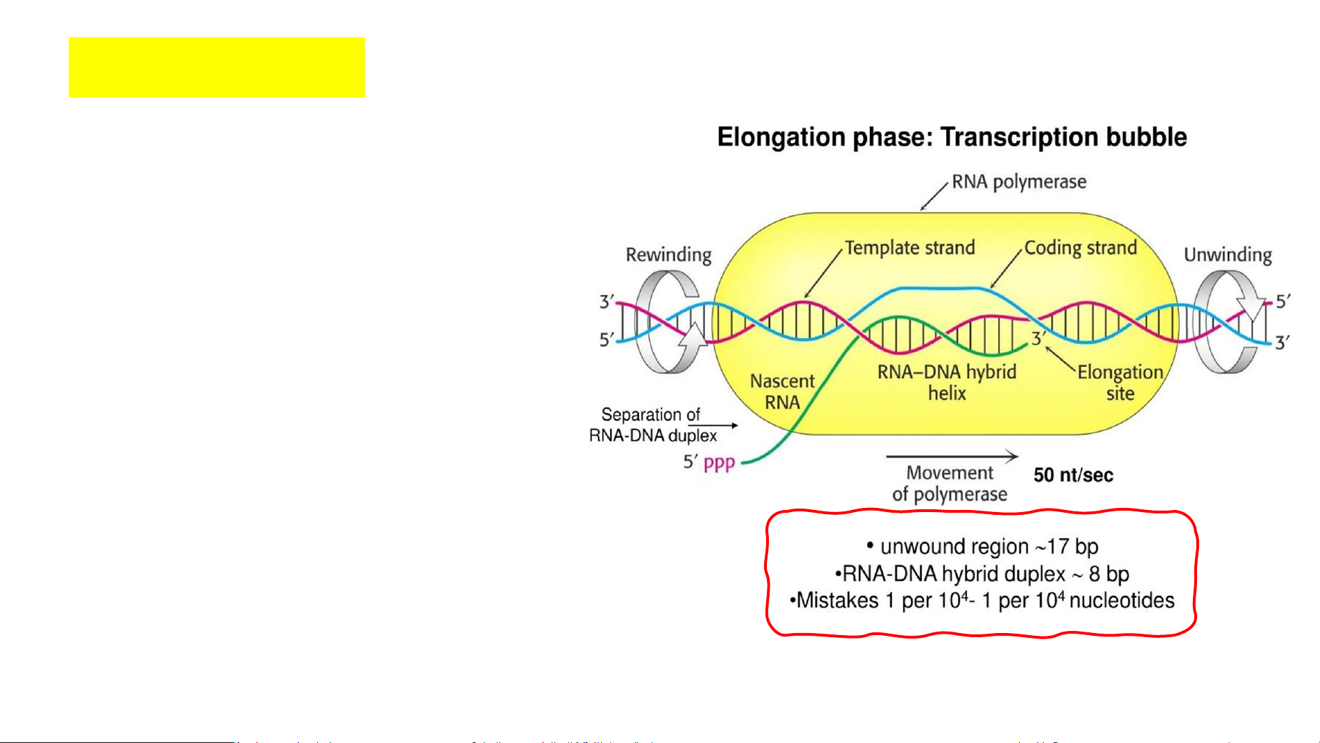 ▪ ssDNA (-) để phiên mã RNA có chiều 5’3’ ▪ nguyên liệu là rNTPs