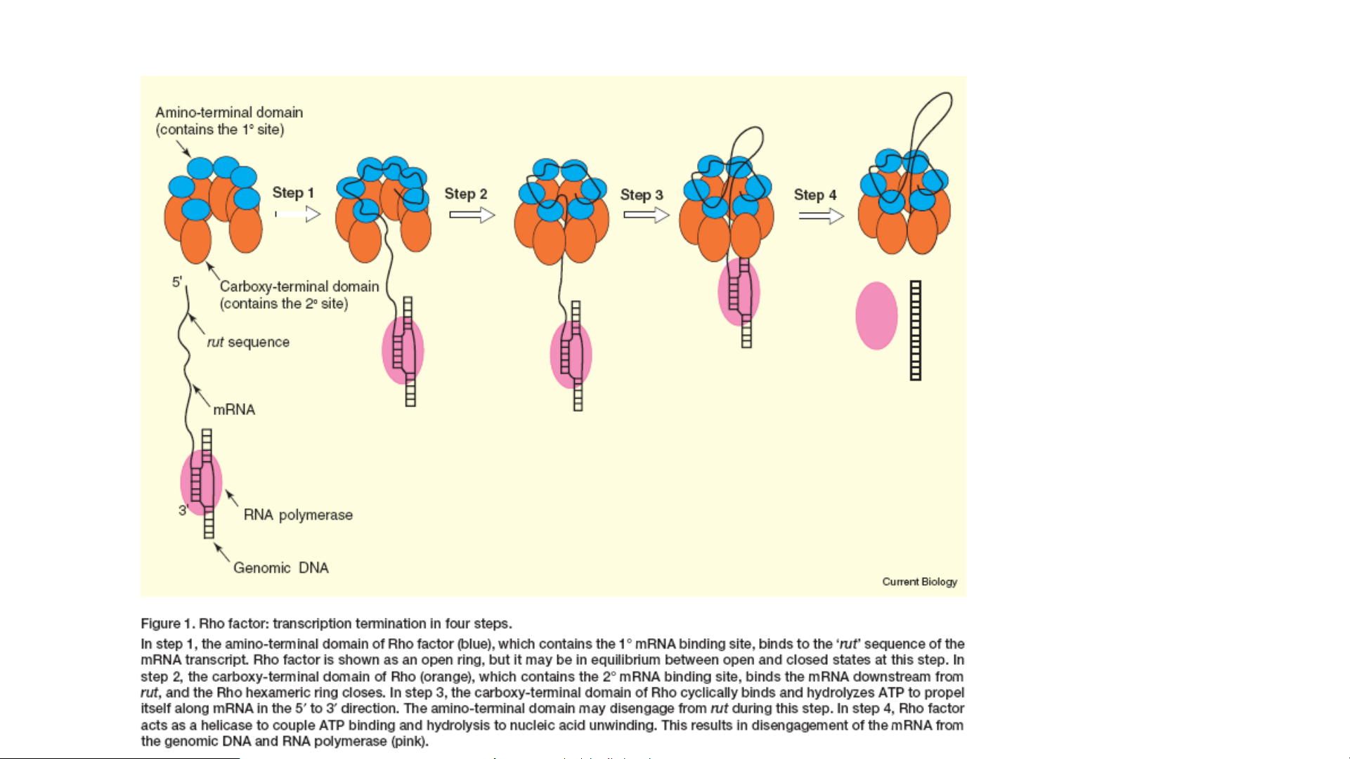 Protein Rho tương tác với rut. Rho (+ATP) hoạt động tách RNA rời khỏi