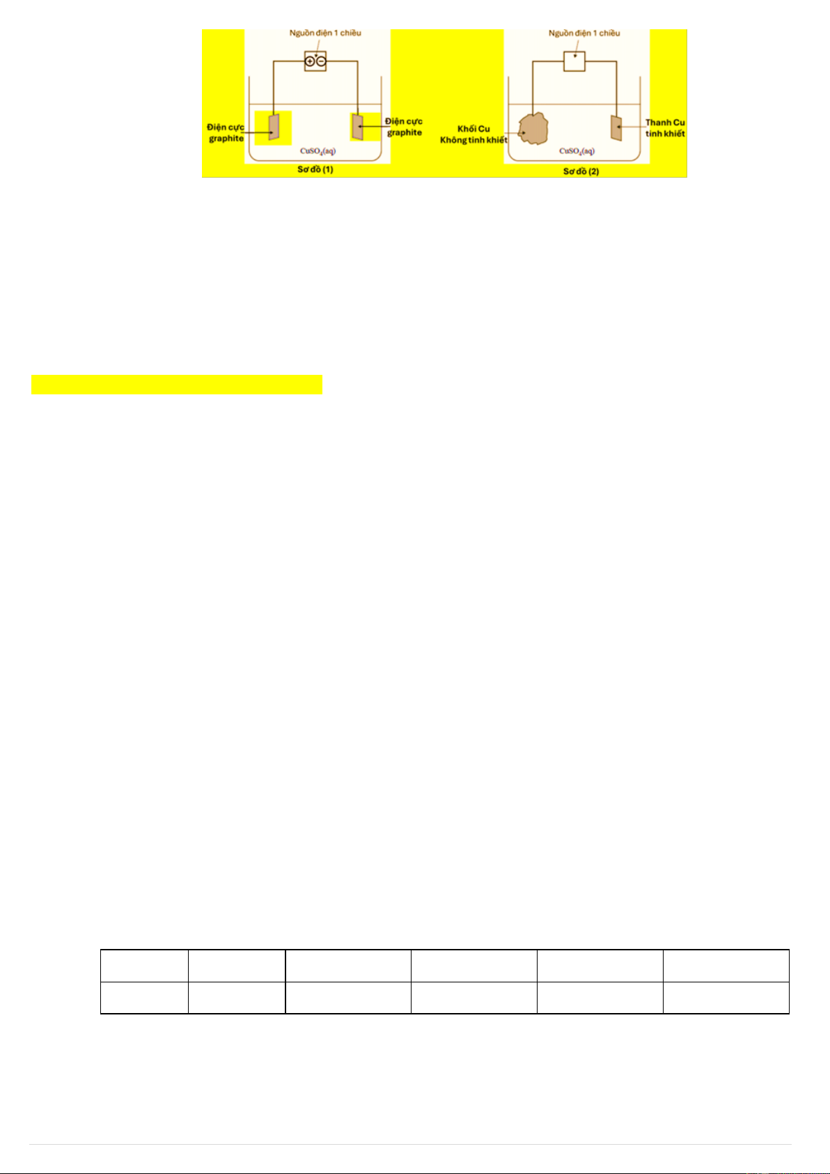 trình tinh luyện đồng (Cu) bằng phương pháp điện phân. Trong sơ đồ (2), các khối đồng có độ tinh khiết
