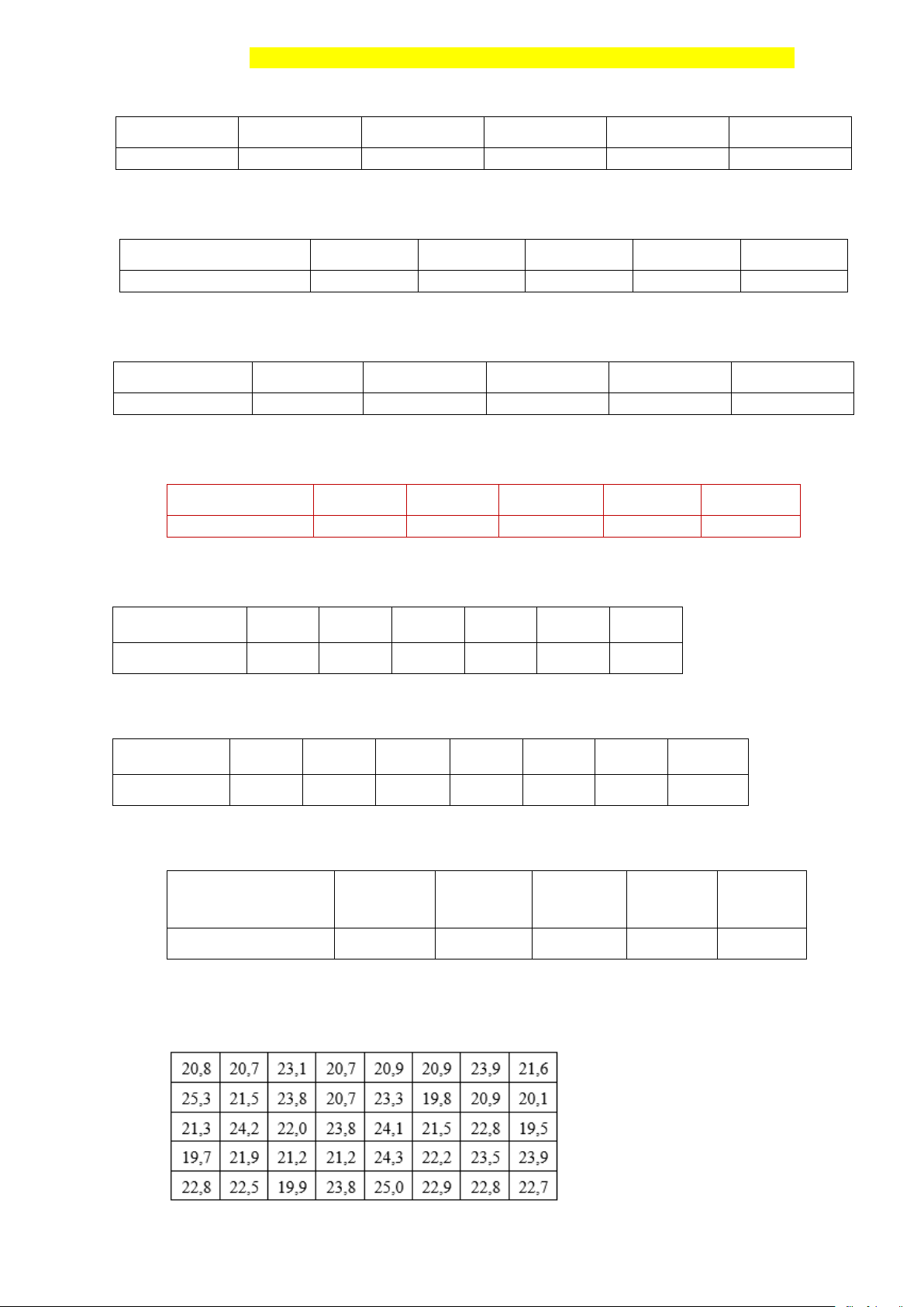 + 50,7 + 51, 4 + 50, 4 + 51,1+ 50,1+ 50 + 48,6 + 50,5 + 51, 2 + 49,6):30 51,1. Phương sai: 2 2 2 2 2 15043 15043 15043 15043 15043 2 s = 49,5 − + 48,9 − + 51, 4 − + 51,1− + 49,3 − 300 300 300 300 300 2 2 2 2 15043 15043 15043 15043 2 + 15043 48,7 − + 50,8 − + 50,7 − + 51, 2 − + 50, 2 − 300 300 300 300 300 2 2 2 2 2 15043 15043 15043 15043 15043 + 48,8 − + 50,6 − + 48,7 − + 49,8 − + 50,9 − 300 300 300 300 300 2 2 2 15043 15043 15043 15043 2 2 + 15043 49,6 − + 48,8 − + 49, 2 − + 51,3 − + 51, 2 − 300 300 300 300 300 2 2 2 2 2 15043 15043 15043 15043 15043 + 50,7 − + 51, 4 − + 50, 4 − + 51,1− + 50,1− 300 300 300 300 300 2 2 2 15043 15043 15043 15 2 2 + 043 15043 50 − + 48,6 − + 50,5 − + 51, 2 − + 49,6 − : 30 300 300 300 300 300 78461 = . 90000 78461