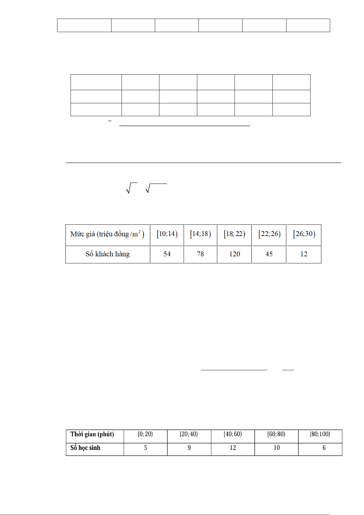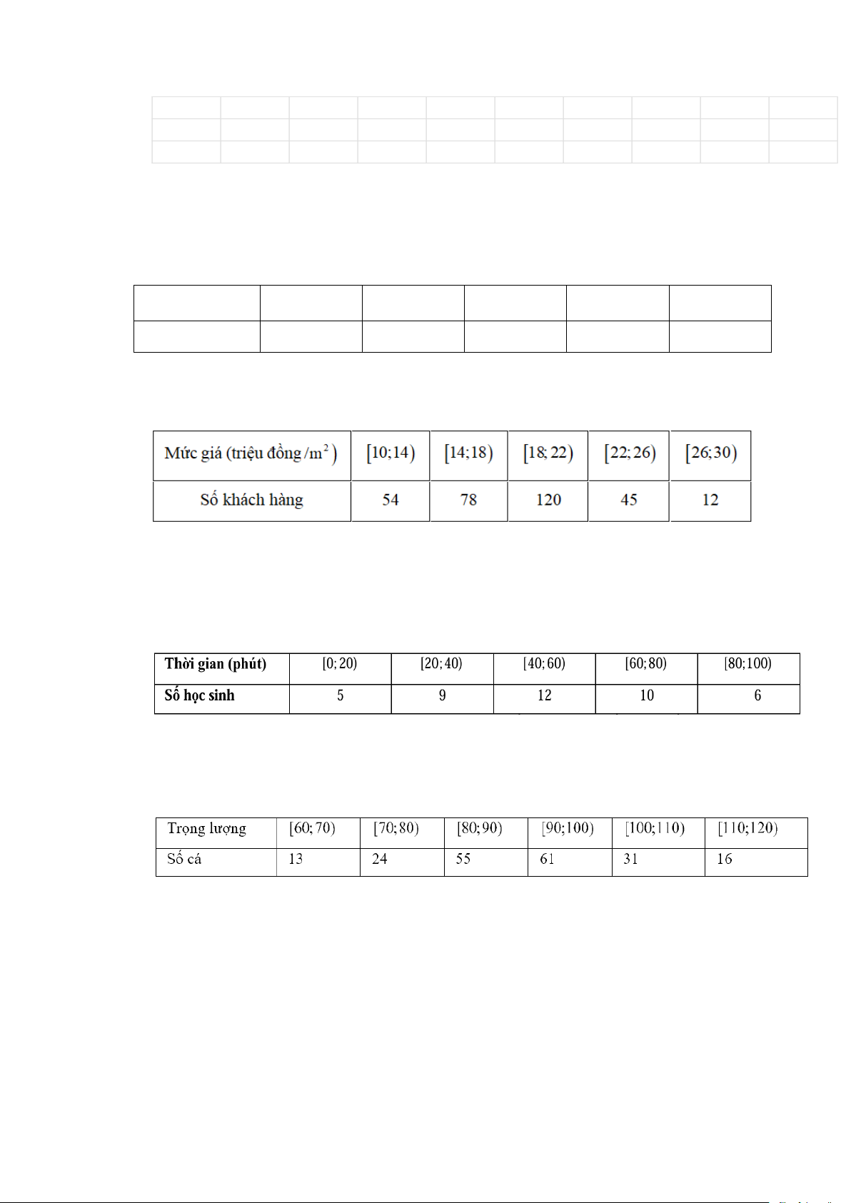 Câu 15. Một công ty xây dựng khảo sát khách hàng xem họ có nhu cầu mua nhà ở mức giá nào. Kết quả