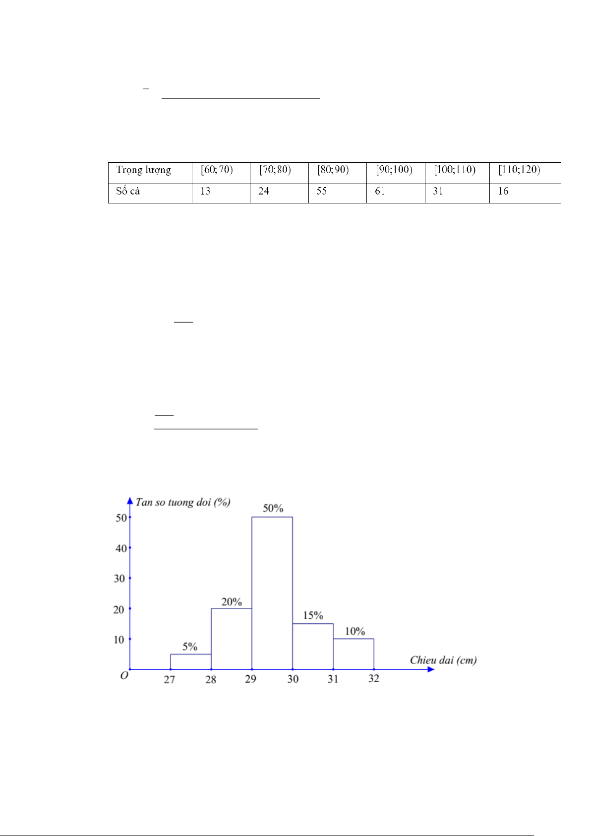 30 nên ta có tứ phân vị thứ ba Q = 50,5 + 5 = 54,6 kg . 3 ( ) 4 16 16 Suy ra Q
