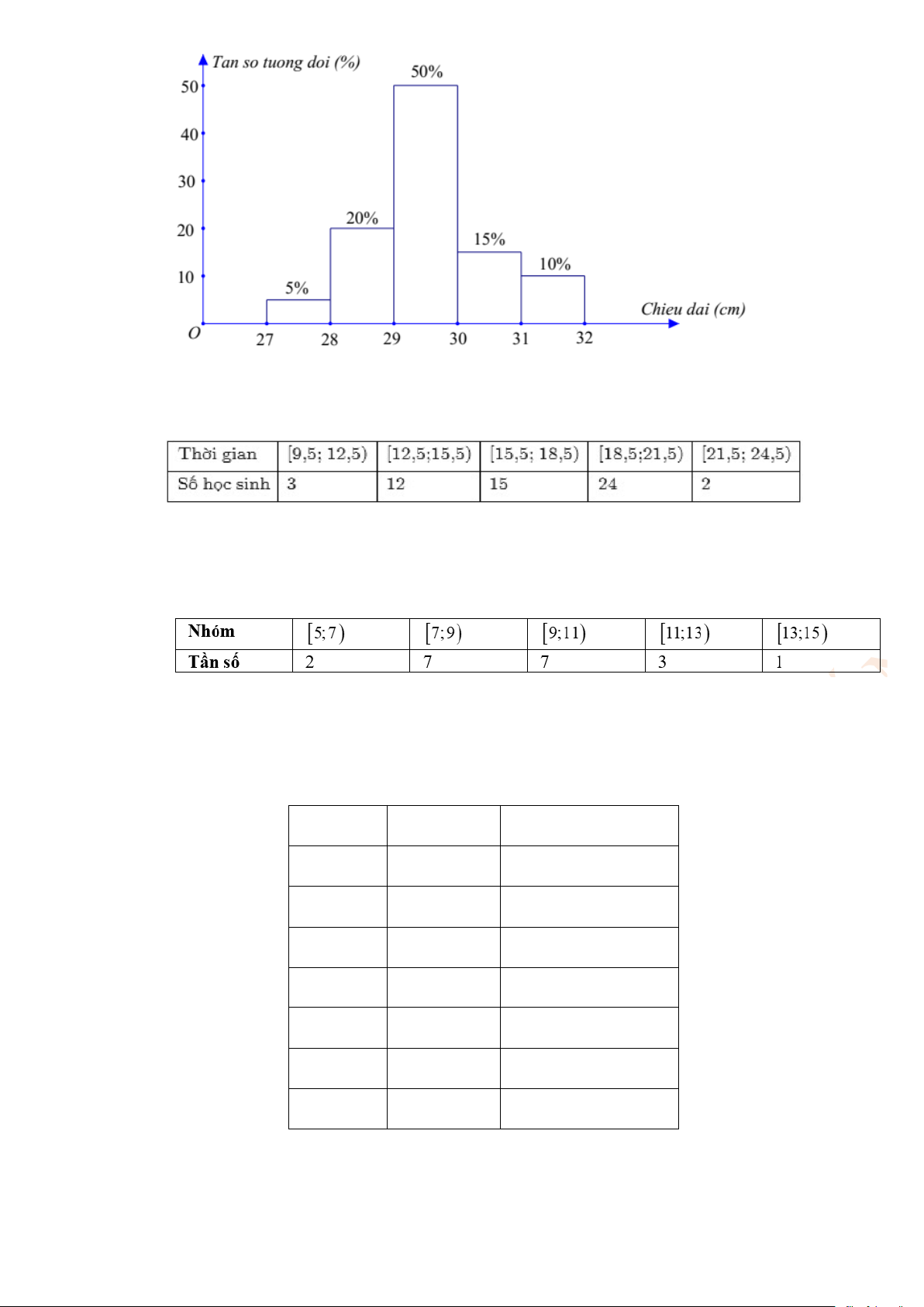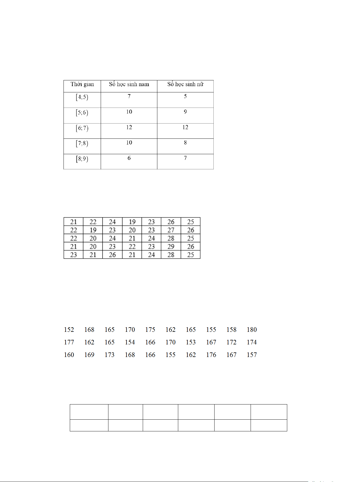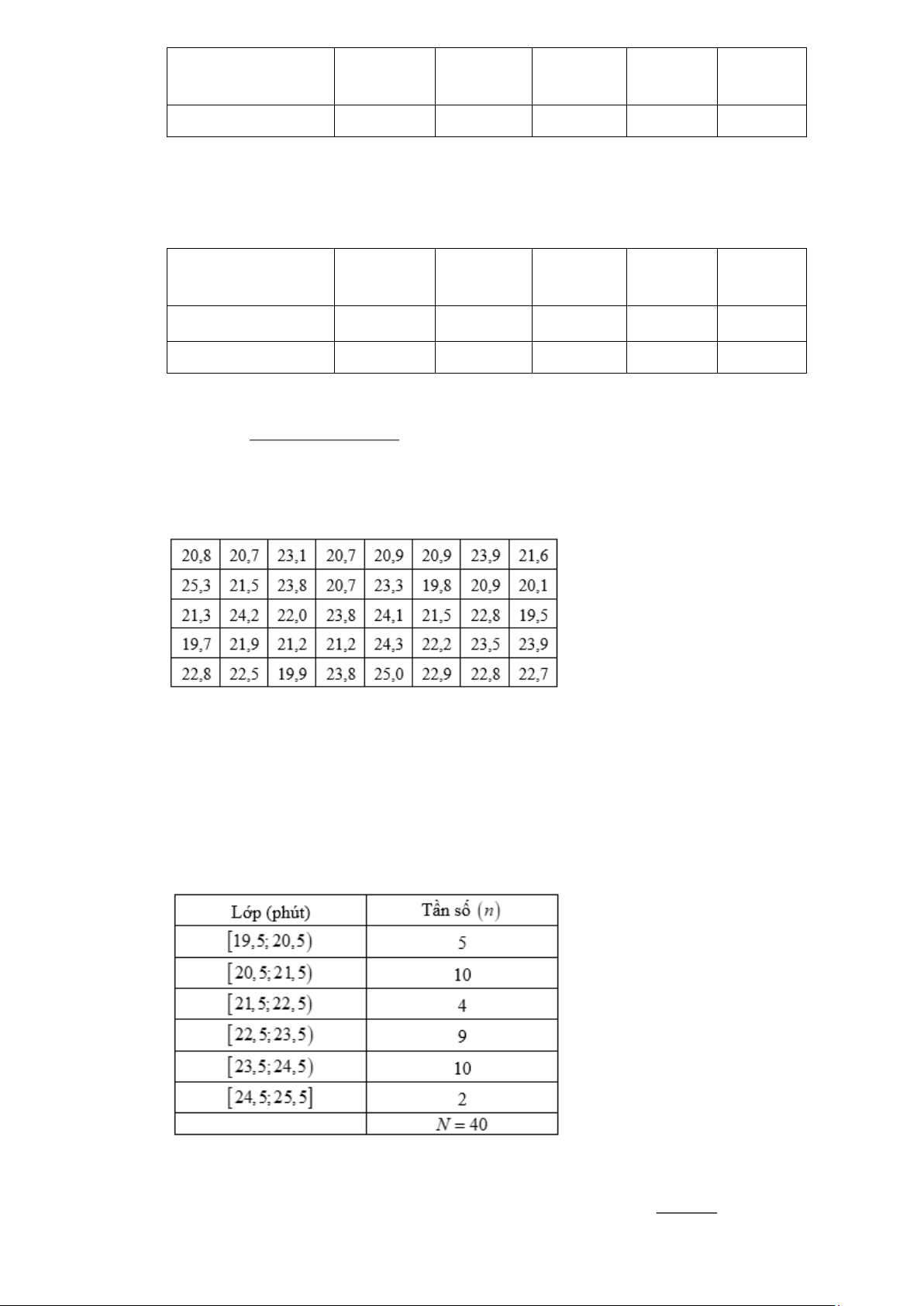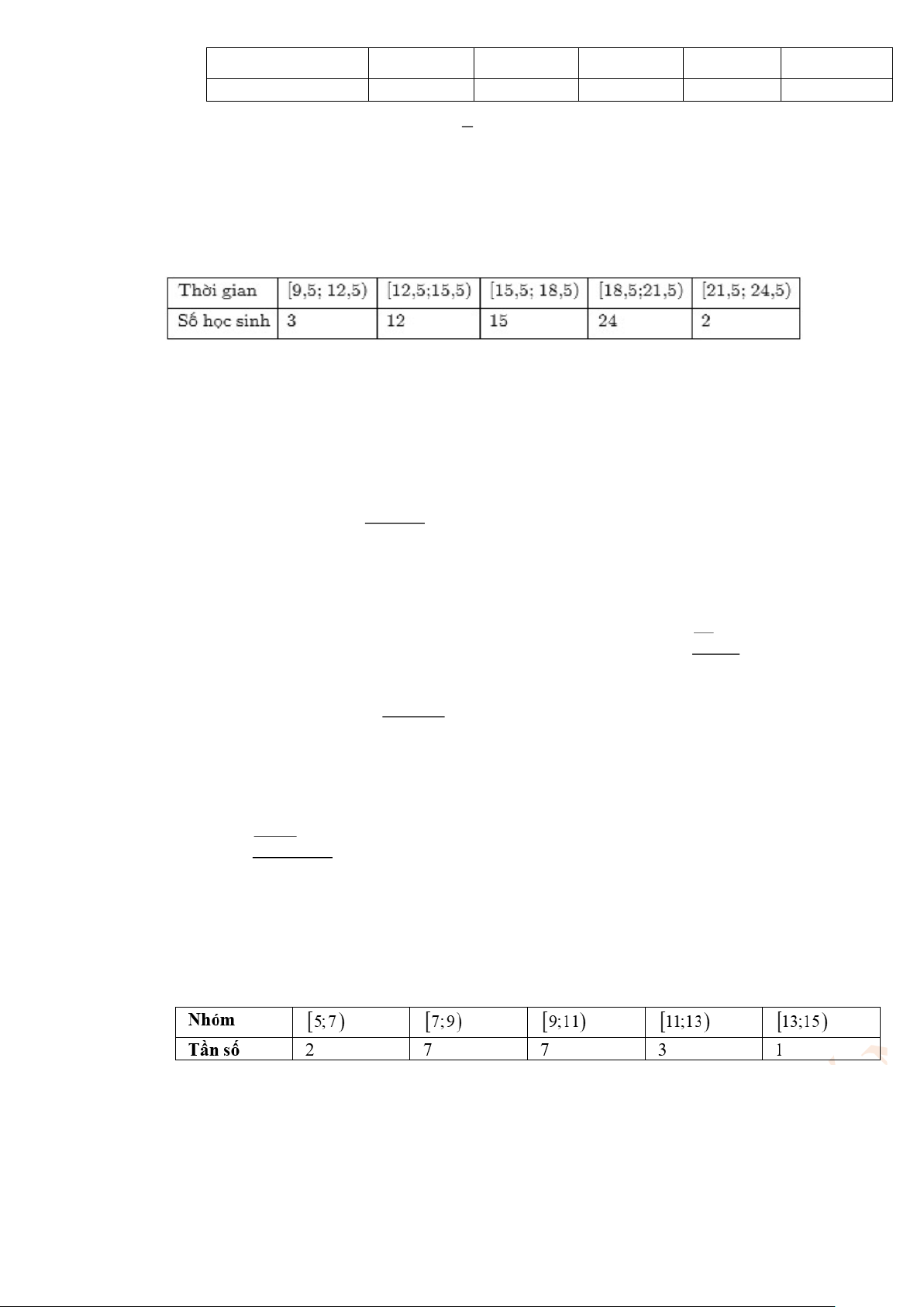 Câu 8. Cho bảng số liệu thống kê thời gian (phút) hoàn thành một bài tập toán của một học sinh lớp 11. Trang 1