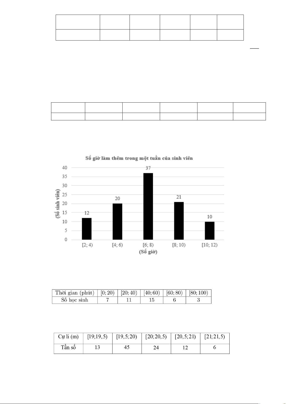 Câu 24. Kết quả điều tra về số giờ làm thêm trong 1 tuần của một nhóm sinh viên được cho ở bảng sau