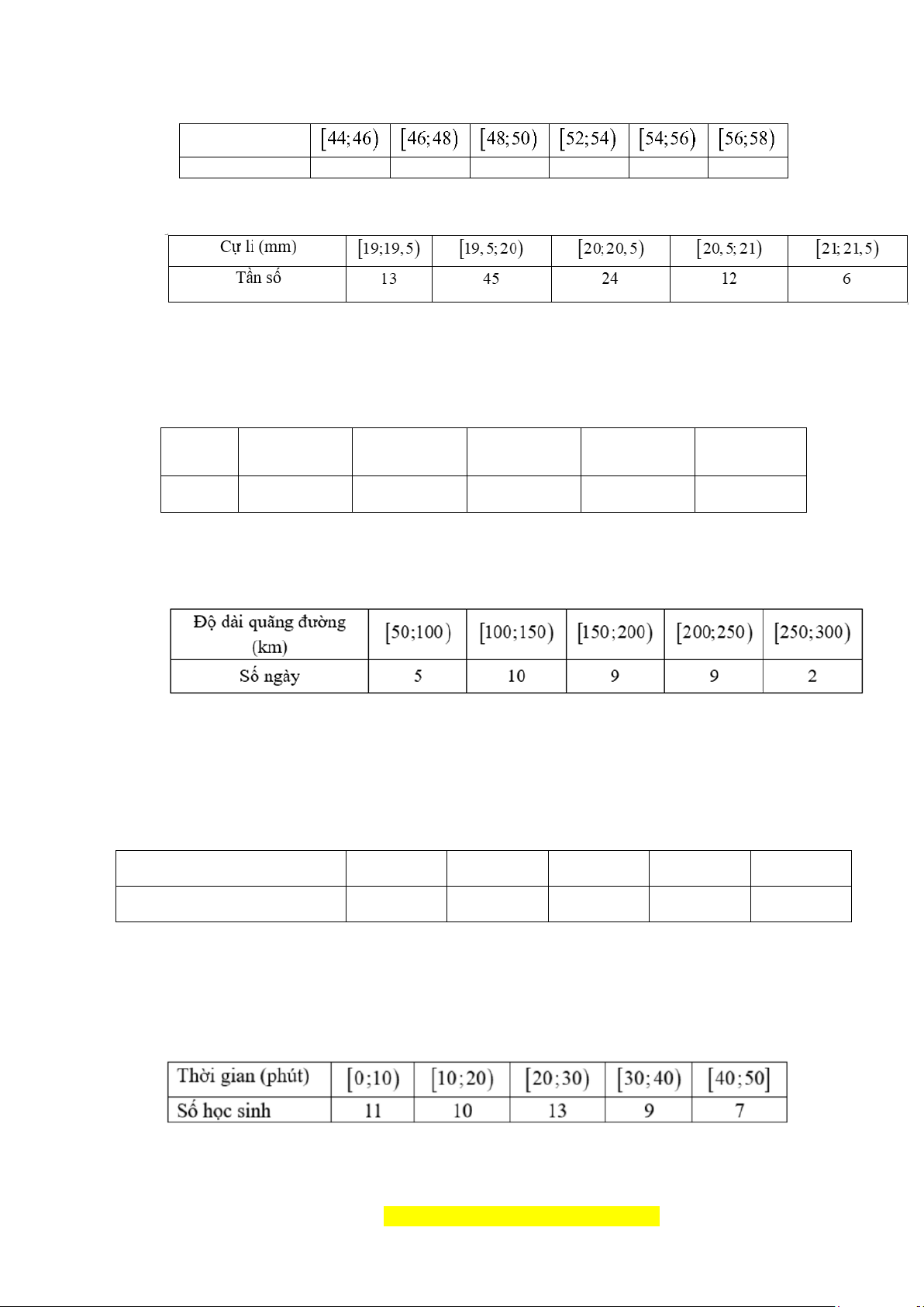 Câu 30. Một bác tài xế thống kê lại độ dài quãng đường (đơn vị: km) mà bác đã lái xe mỗi ngày trong một tháng ở bảng sau: