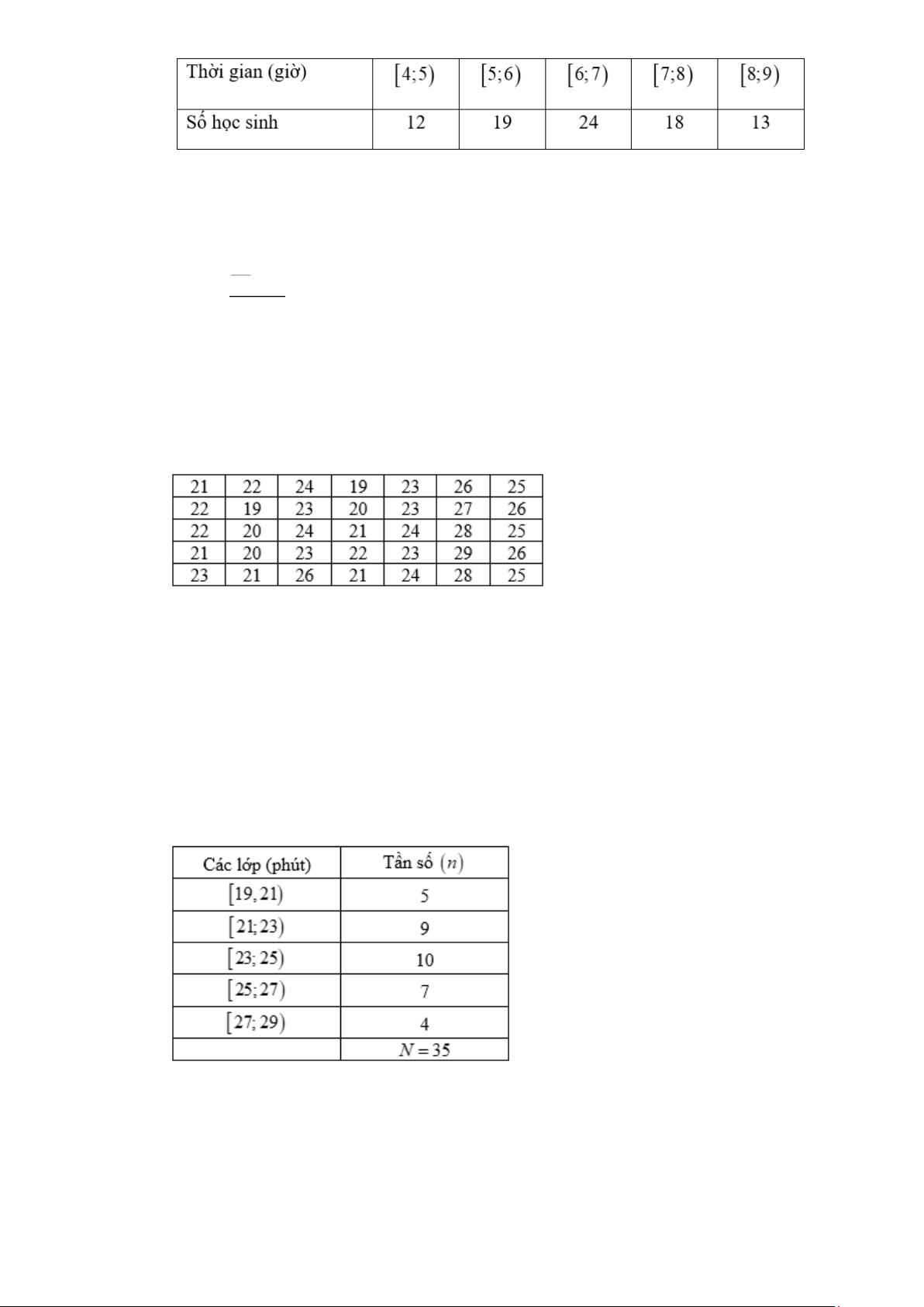 Thời gian (phút) 0,5 ; 10,5) 10,5 ; 20,5) 20,5 ; 30,5) 30,5 ; 40,5) 40,5 ; 50,5) Số học sinh 2 10 6 4 3