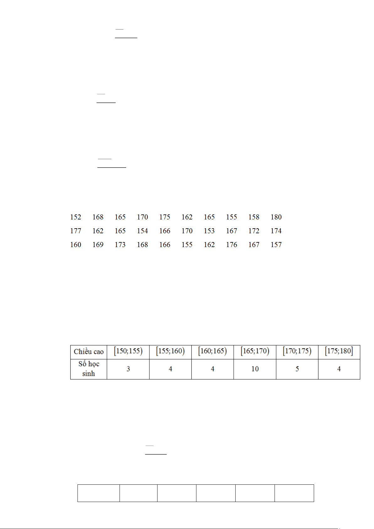 Câu 11. Khảo sát chiều cao (cm) của 30 học sinh lớp 10A được ghi lại như sau: