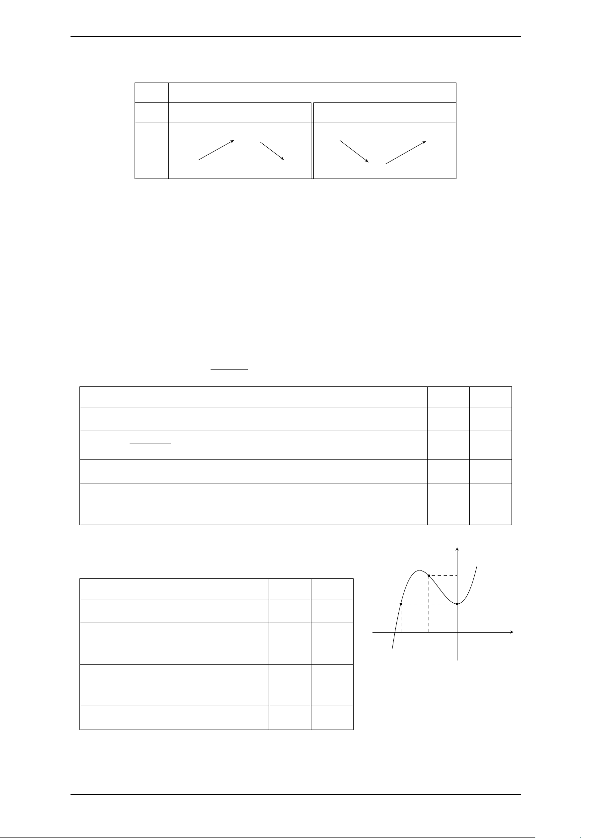 Câu 8. Cho hàm số y = f (x) có bảng biến thiên như sau: x −∞ 0 3 +∞ y′ + 0 − 0 + 2 +∞ + y −∞ −4 −