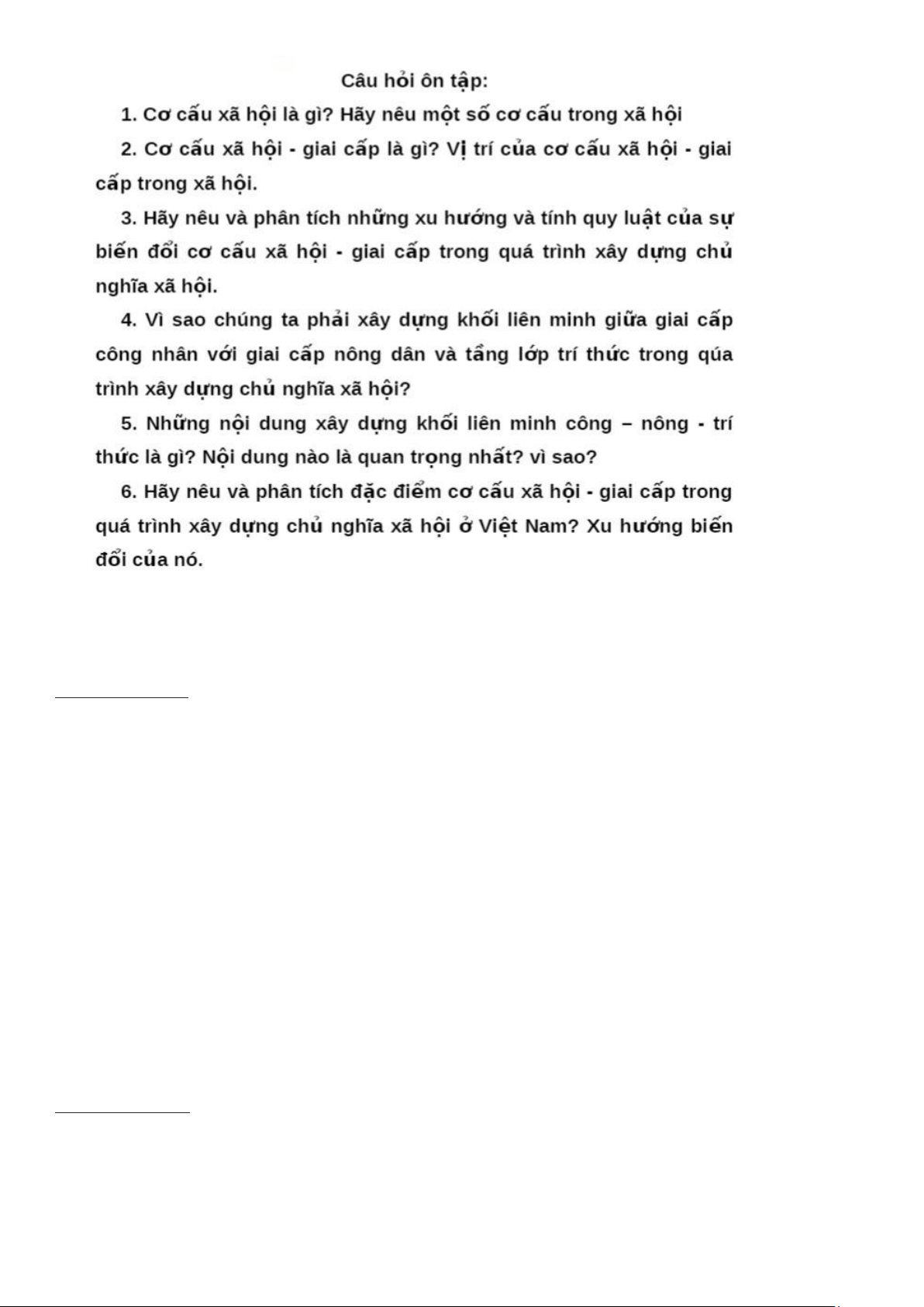 31 Câu hỏi ôn tập môn Chủ nghĩa xã hội khoa học