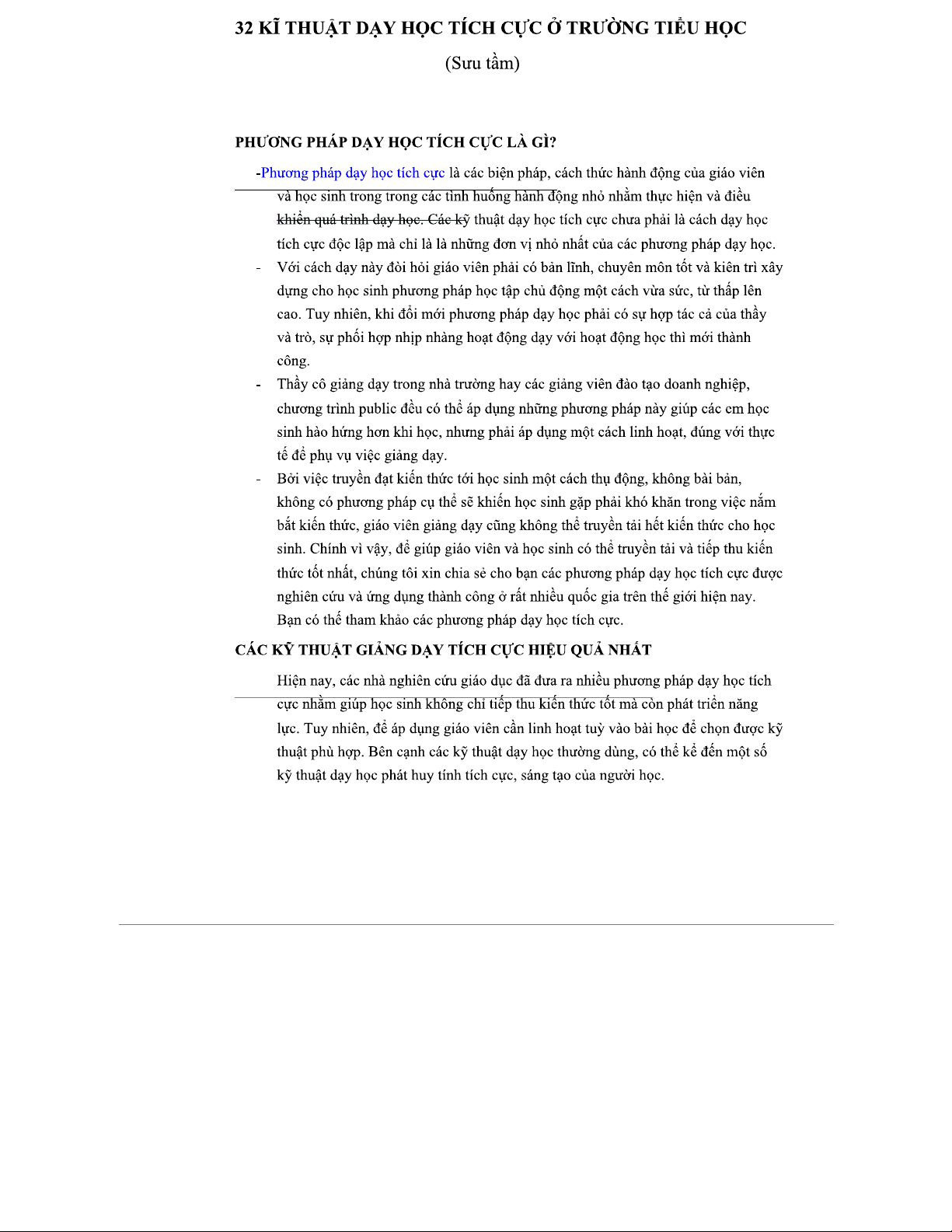 32 Kỹ Thuật Dạy Học Tích Cực Ở Trường Tiểu Học: Tài Liệu Tham Khảo