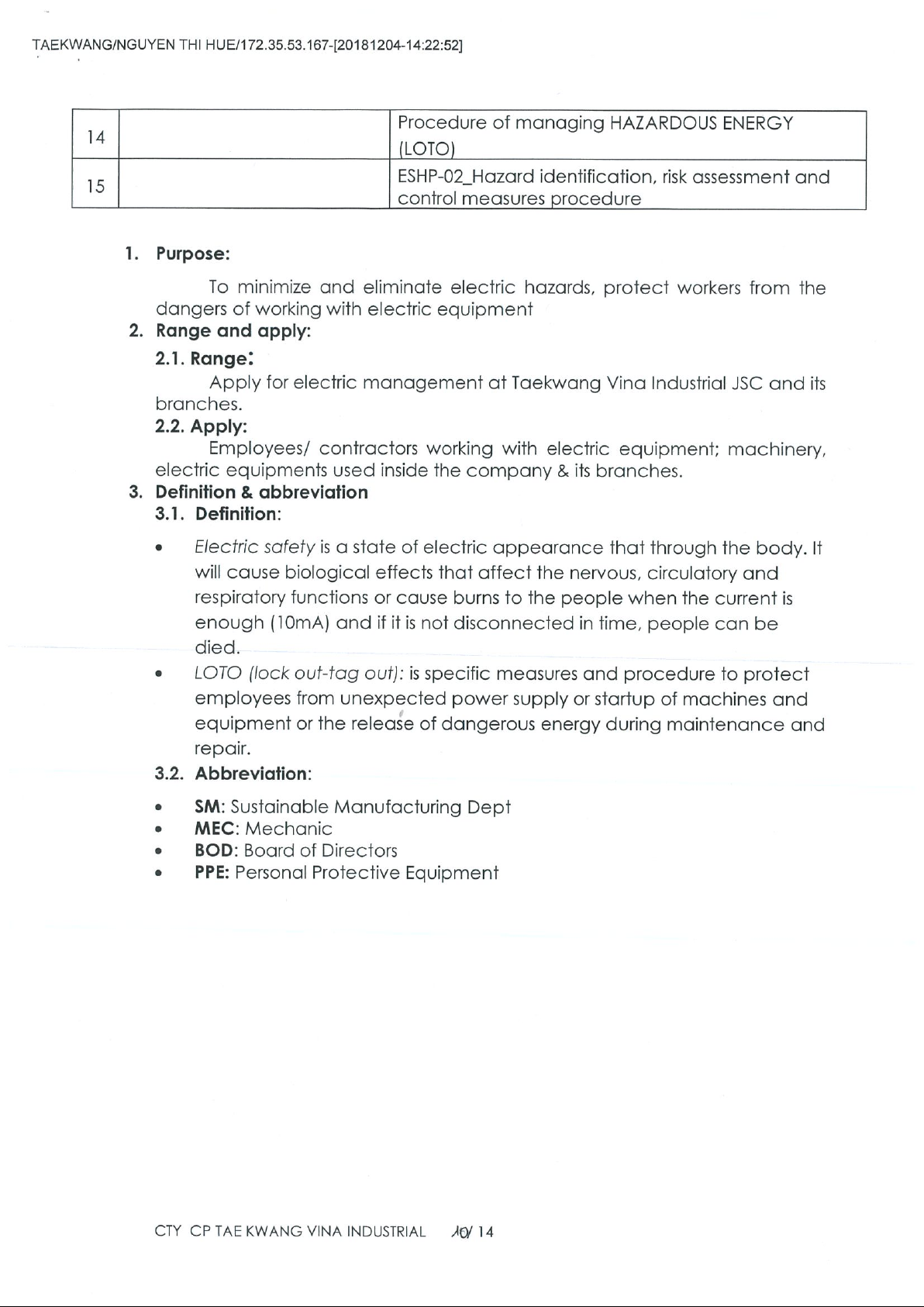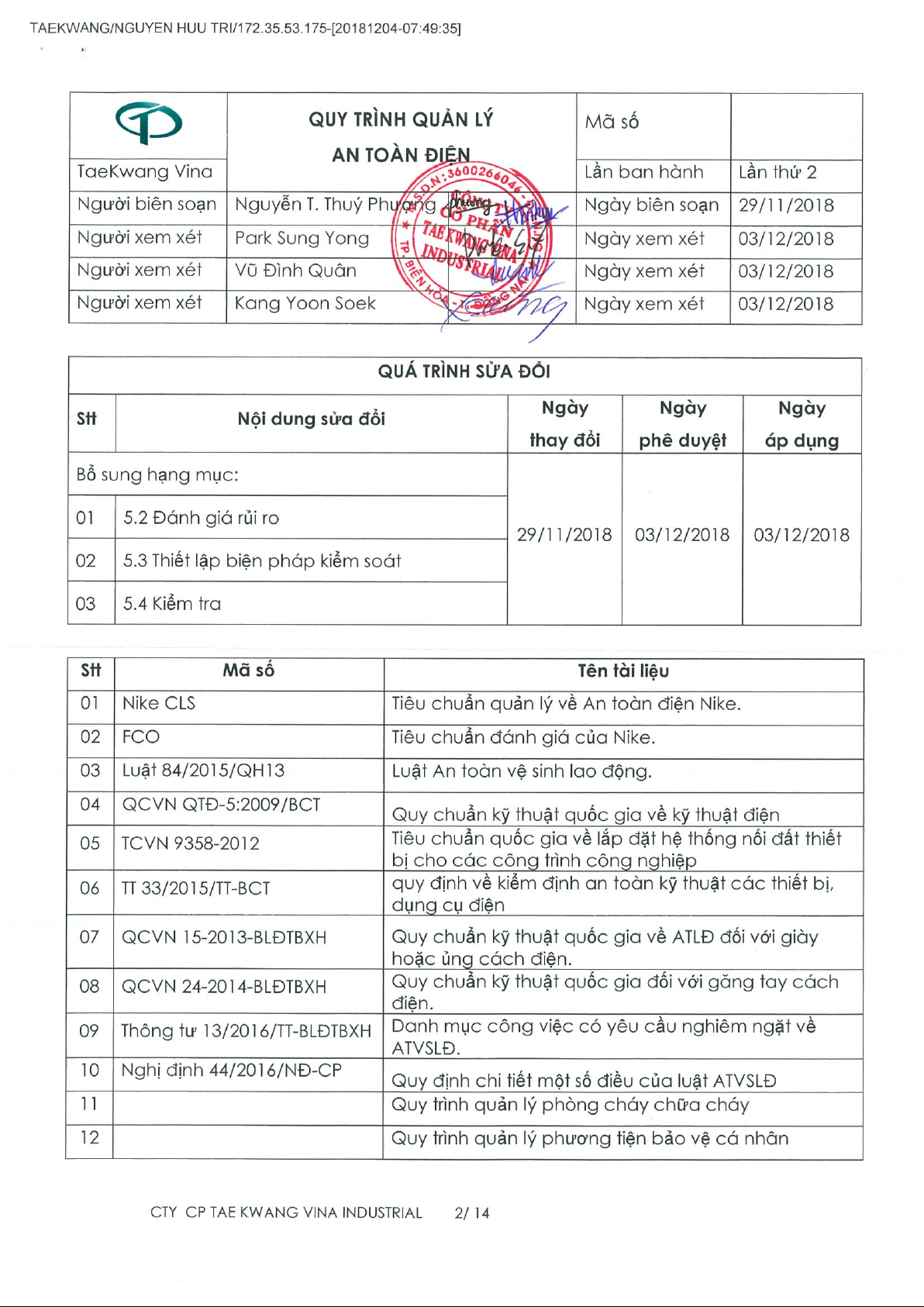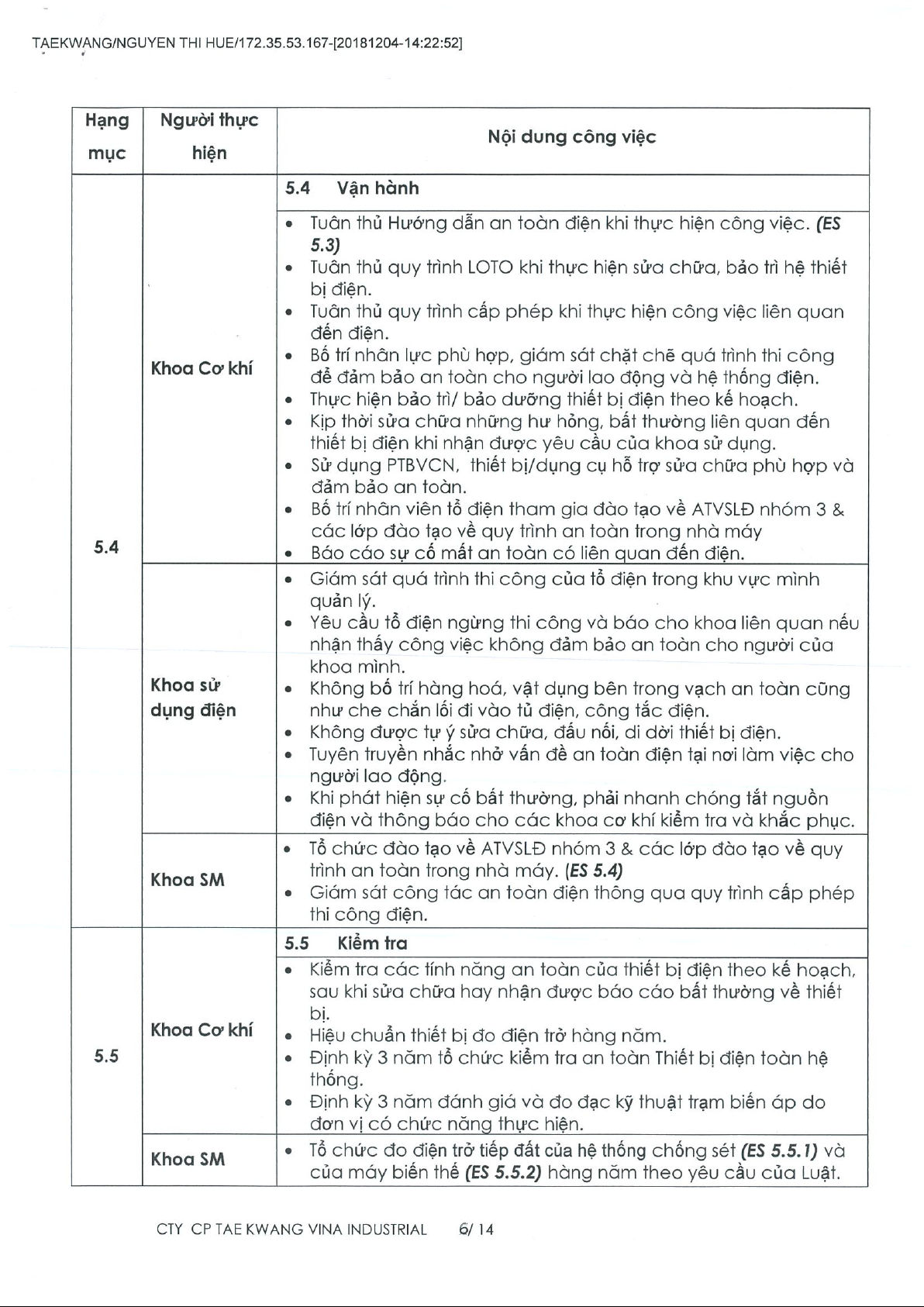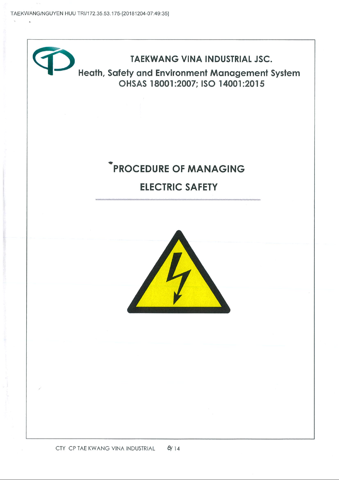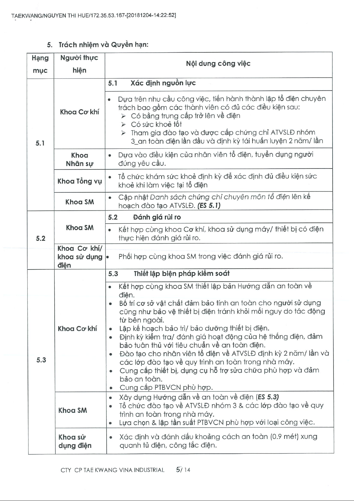Quy trình quản lý an toàn điện | Quy trình an toàn