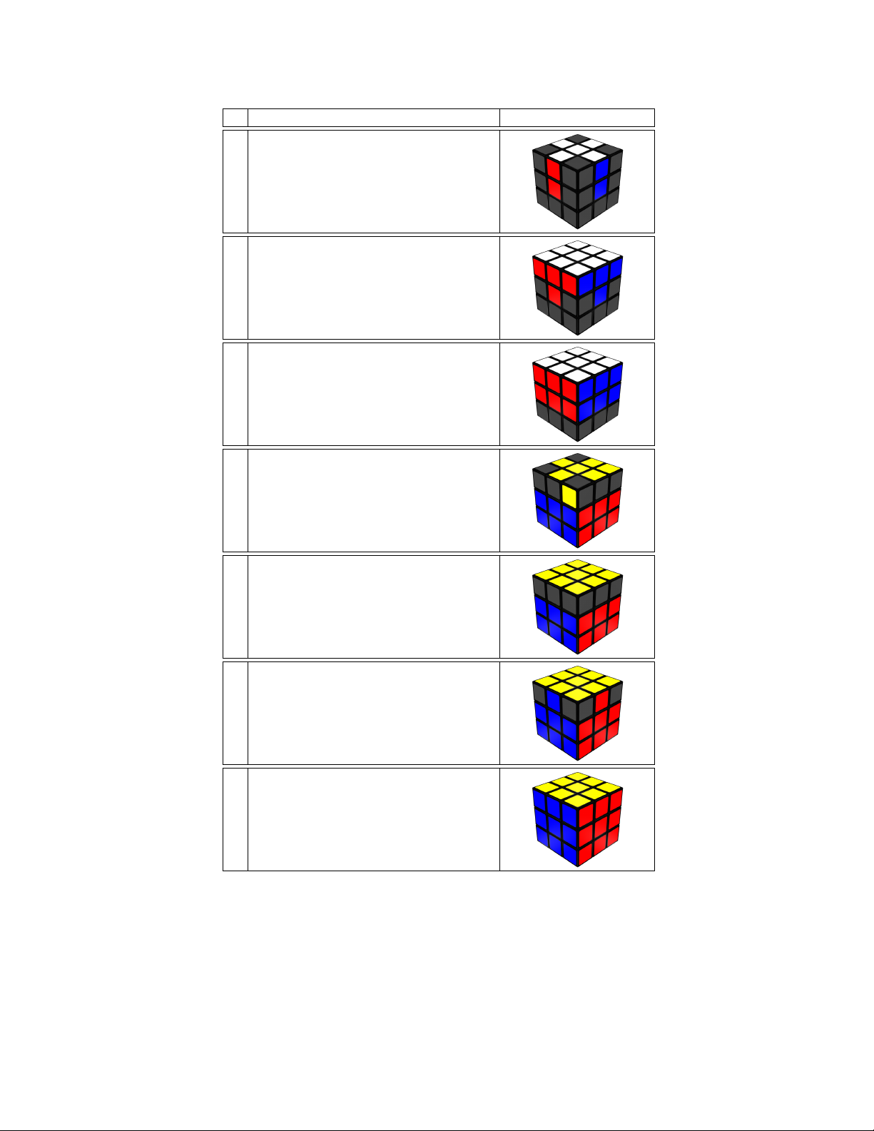 Table 3: Algorithms of the 2nd part to orientate the right upper corner (well positioned) Figure Description Algorithms