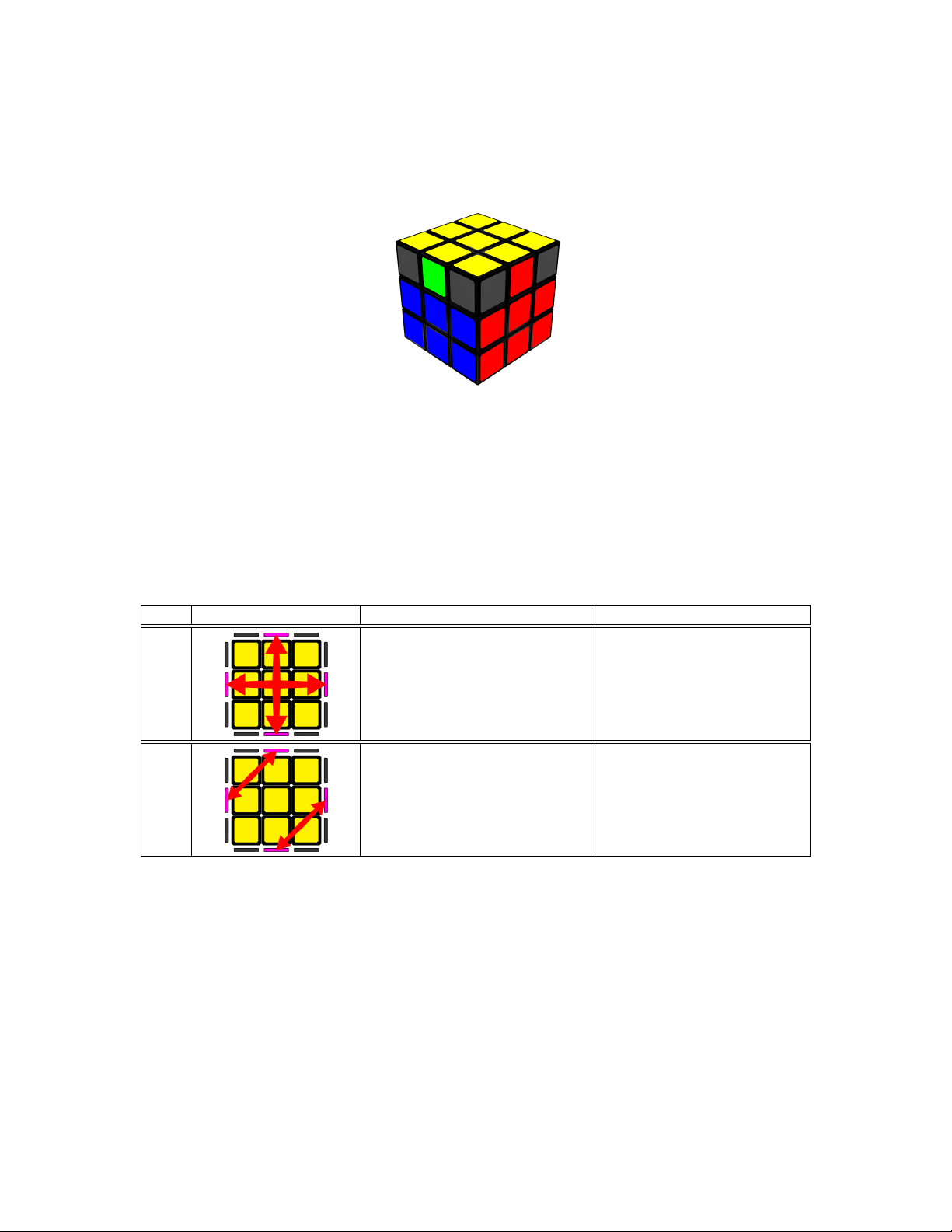 complete and to avoid turning the cube, right-handed people will prefer the movements described in Tables 3 and 4, and
