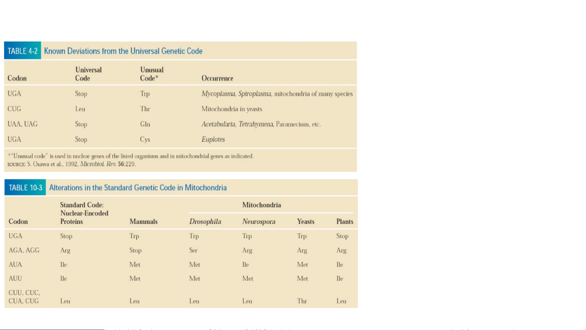 ngoại lệ nào của mã di truyền? Vì sao?