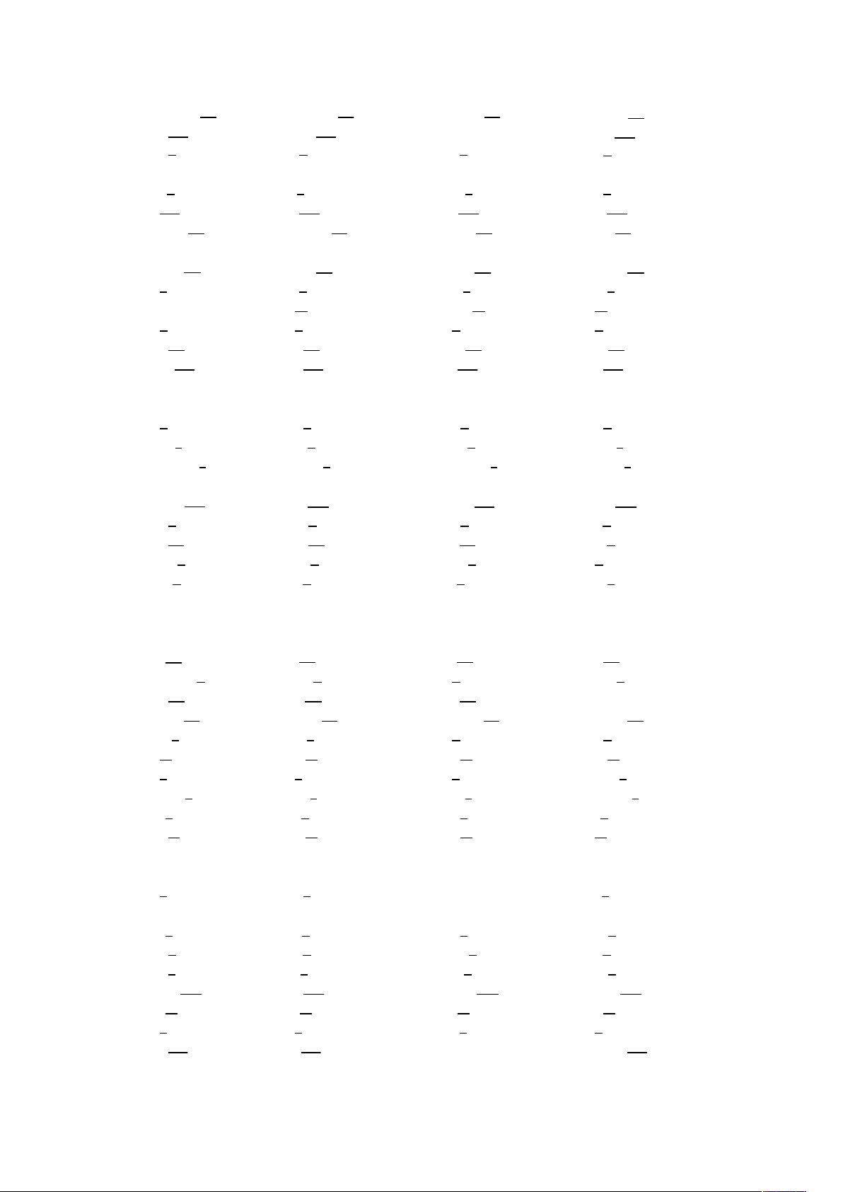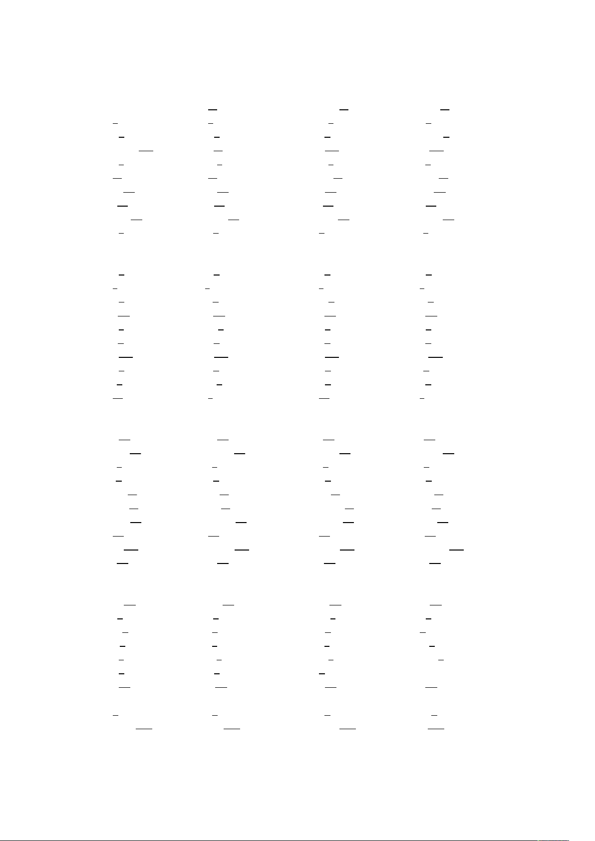 Chọn từ có âm tiết được gạch chân có phát âm khác với những từ còn lại Exercise 1 1. A. rough B. sum C. utter D. union 2. A. noon B. tool C. blood D. spoon 3. A. chemist B. chicken C. church D. century 4. A. thought B. tough C. taught D. bought 5. A. pleasure B. heat C. meat D. feed 6. A. chalk B. champagne C. machine D. ship 7. A. knit B. hide C. tide D. fly 8. A. put B. could C. push D. moon 9. A. how B. town C. power D. slow 10. A. talked B. naked C. asked D. liked Exercise 2 1. A. hear B. clear C. bear D. ear 2. A. heat B. great C. beat D. cheat 3. A. blood B. pool C. food D. tool 4. A. university B. unique C. unit D. undo 5. A. mouse B. could C. would D. put 6. A. faithful B. failure C. fairly D. fainted 7. A. course B. court C. pour D. courage 8. A. worked B. stopped C. forced D. wanted 9. A. new B. sew C. few D. nephew 10. A. sun B. sure C. success D. sort Exercise 3 1. A. month B. much C. come D. home 2. A. wood B. food C. look D. foot 3. A. post B. though C. how D. clothes 4. A. beard B. bird C. learn D. turn 5. A. false B. laugh C. glass D. after 6. A. camp B. lamp C. cupboard D. apart 7. A. genetics B. generate C. kennel D. gentle 8. A. cleanse B. please C. treat D. retreat 9. A. mechanic B. machinery C. chemist D. cholera 10. A. thank B. band C. complain D. insert Exercise 4 1. A. grammar B. damage C. mammal D. drama 2. A. both B. tenth C. myth D. with 3. A. gate B. gem C. gaze D. gaudy 4. A. thus B. thumb C. sympathy D. then 5. A. lays B. says C. stays D. plays 6. A. scholarship B. chaos C. cherish D. chorus 7. A. sign B. minor C. rival D. trivial 8. A. message B. privilege C. college D. collage 9. A. beard B. rehearse C. hearsay D.endearment 10. A. dynamic B. typical C. cynicism D. hypocrite Exercise 5 1. A. candy B.sandy C. many D. handy 2. A. earning B. learning C. searching D. clearing 3. A. waited B. mended C. naked D. faced 4. A. given B. risen C. ridden D. whiten 5. A. cough B. tough C. rough D. enough 6. A. accident B. jazz C. stamps D. watch 7. A. this B. thick C. maths D. thin 8. A. gas B. gain C. germ D. goods 9. A. bought B. nought C. plough D. thought 10. A. spear B. gear C. fear D. pear Exercise 6 1. A. pudding B. put C. pull D. puncture 2. A. absent B. recent C. decent D. present 3. A. promise B. devise C. surprise D. realise 4. A. liable B. livid C. revival D. final 5. A. houses B. faces C. horses D. places 6. A. bush B. brush C. bus D. cup 7. A. boat B. broad C. coast D. alone 8. A. large B. vegetable C. angry D. gem 9. A. more B. north C. lost D. water 10. A. distribute B. tribe C. triangle D. trial Exercise 7 1. A. food B. look C. took D. good 2. A. luggage B. fragile C. general D. bargain 3. A. nourish B. flourish C. courageous D. southern 4. A. naked B. sacred C. needed D. walked 5. A. walk B. wash C. on D. not 6. A. eight B. freight C. height D. weight 7. A. curriculum B. coincide C. currency D. conception 8. A. divisible B. design C. disease D. excursion 9. A. rather B. sacrifice C. hard D. father 10. A. hair B. stairs C. heir D. aisle Exercise 8 1. A. evening B. key C. envelope D. secret 2. A. light B. fine C. knife D. principle 3. A. farm B. card C. bare D. marvelous 4. A. both B. bottle C. Scotland D. cotton 5. A. park B. farm C. warm D. marmalade 6. A. nature B. pure C. picture D. culture 7. A. faithful B. failure C. fairly D. painted 8. A. country B. cover C. economical D. ceiling 9. A. new B. sew C. few D. nephew 10. A. with B. library C. willing D. if Exercise 9 1. A. this B. there C. breathe D. breath 2. A. ask B. angry C. manager D. damage 3. A. notebook B. hoping C. cock D. potato 4. A. engineer B. verb C. deer D. merely 5. A. dam B. planning C. plane D. candle 6. A. theory B. therefore C. neither D. weather 7. A. shoot B. mood C. poor D. smooth 8. A. seat B. heavy C. reason D. neat 9. A. kissed B. helped C. forced D. wanted 10. A. barn B. can't C. aunt D. tame Exercise 10 1. A. purity B. burning C. cure D. durable 2. A. see B seen C. sportsman D. sure 3. A. pull B. sugar C. plural D. study 4. A. course B. court C. courage D. cough 5. A. bark B. share C. dare D. bare 6. A. cotton B. bottle C. cold D. common 7. A. dear B. hear C. bear D. clear 8. A. bury B. curtain C. burn D. turn 9. A. folk B. work C. pork D. corn 10. A. shout B. sugar C. share D. surgery Exercise 11 1. A. pool B. moon C. food D. foot 2. A. naked B. beloved C. helped D. wicked 3. A. fatal B. favour C. fathom D. famous 4. A. tomb B. comb C. dome D. home 5. A. myth B. with C. both D. tenth 6. A. south B. truth C. smooth D. both 7. A. ticked B. checked C. booked D. naked 8. A. chorus B. cherish C. chaos D. scholar 9. A. chain B. entertain C. bargain D. complain 10. A. food B. blood C. soon D. moon Exercise 12 1. A. about B. amount C. should D. ground 2. A. saddle B. case C. chase D. basement 3. A. drummer B. future C. number D. umbrella 4. A. flame B. fame C. came D. manner 5. A. darkness B. warmth C. market D. remark 6. A. hunt B. pullover C. under D. funny 7. A. book B. floor C. hook D. cooker 8. A. figure B. bright C. fight D. sight 9. A. over B. rose C. cover D. chosen 10. A. baggage B. village C. manage D. stage Exercise 13 1. A. butter B. put C. sugar D. push 2. A. few B. new C. threw D. knew 3. A. pretty B. get C. send D. well 4. A. grew B. threw C. knew D. flew 5. A. close B. chose C. lose D. rose 6. A. beard B. fur C. search D. prefer 7. A. are B. fair C. there D. wear 8. A. reliable B. living C. revival D. final 9. A. hasty B. nasty C. tasty D. wastage 10. A. bead B. read C. dead D. recede Exercise 14 1. A. nature B. change C. gravity D. basis 2. A. discipline B. vision C. cylinder D. muscle 3. A. office B. promise C. service D. expertise 4. A. suitable B. biscuit C. guilty D. building 5. A. patient B. crescent C. ancient D. machine 6. A. physical B. mythology C. rhythmic D. psychology 7. A. bury B. friendly C. pretty D. pleasant 8. A. chorus B. cherish C. chaos D. scholarship 9. A. creature B. decent C. league D. menace 10. A. danger B. ang