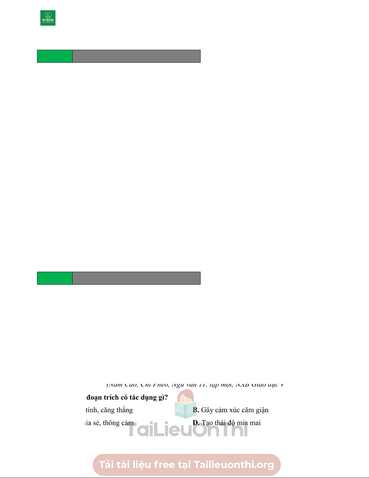 D. Tạo thái độ mỉa mai Câu 99