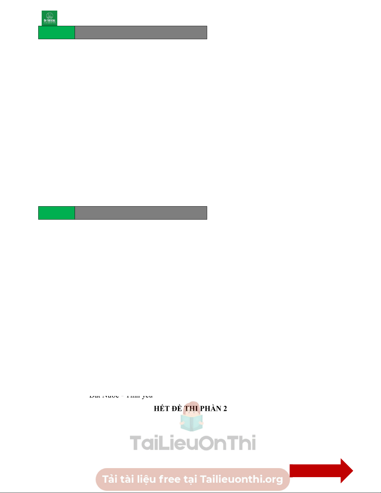 D. Tư tưởng Đất Nước - Tình yêu HẾT ĐỀ THI PHẦN 2 KẾT THÚC Đề thi tham khảo