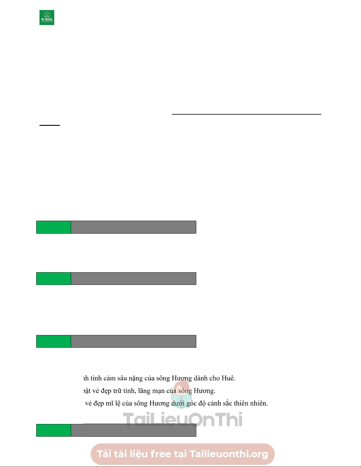 D. Khắc họa vẻ đẹp mĩ lệ của sông Hương dưới góc độ cảnh sắc thiên nhiên. Câu 54 Tailieuchuan.vn
