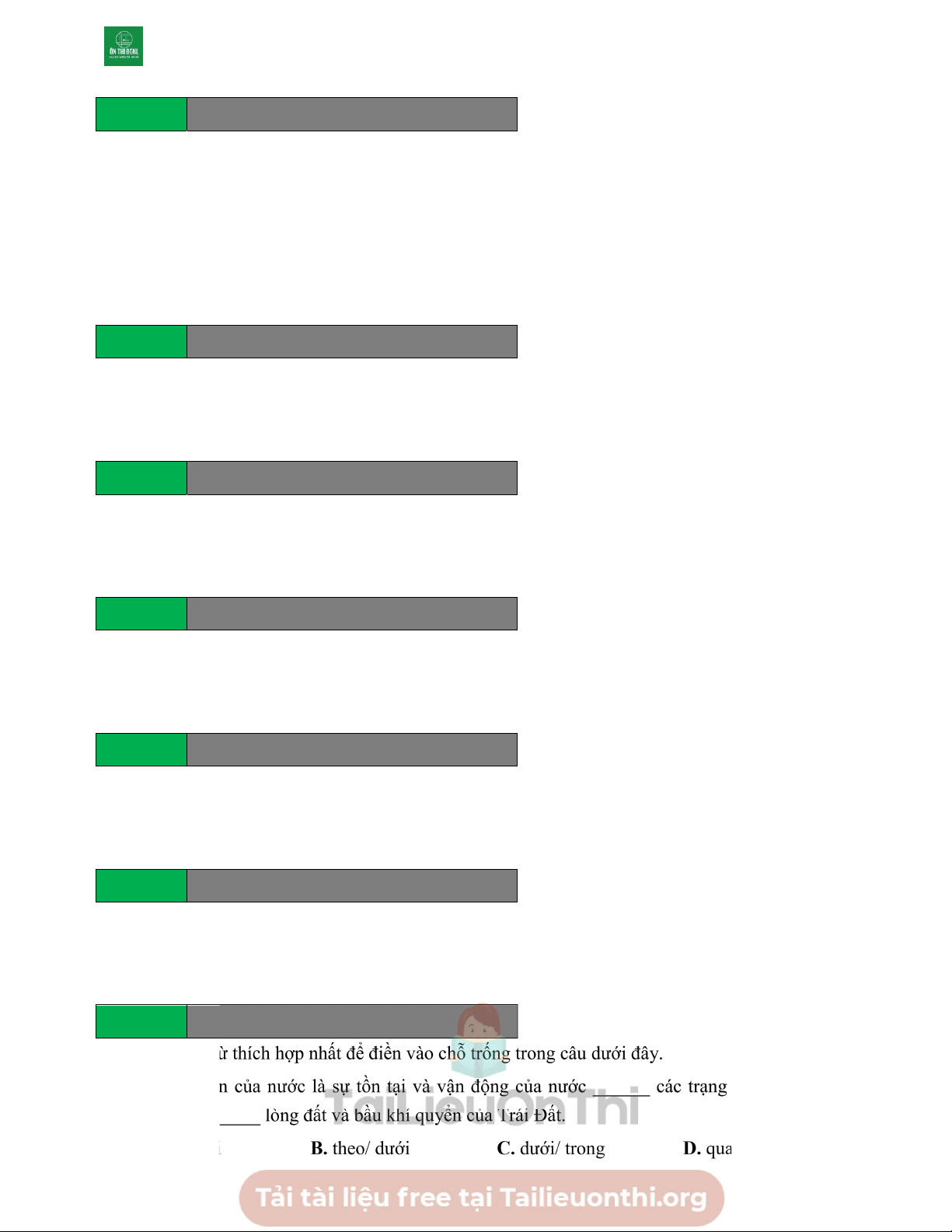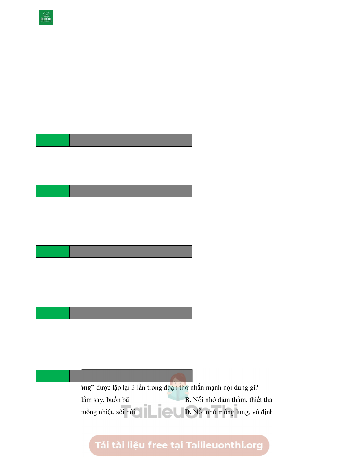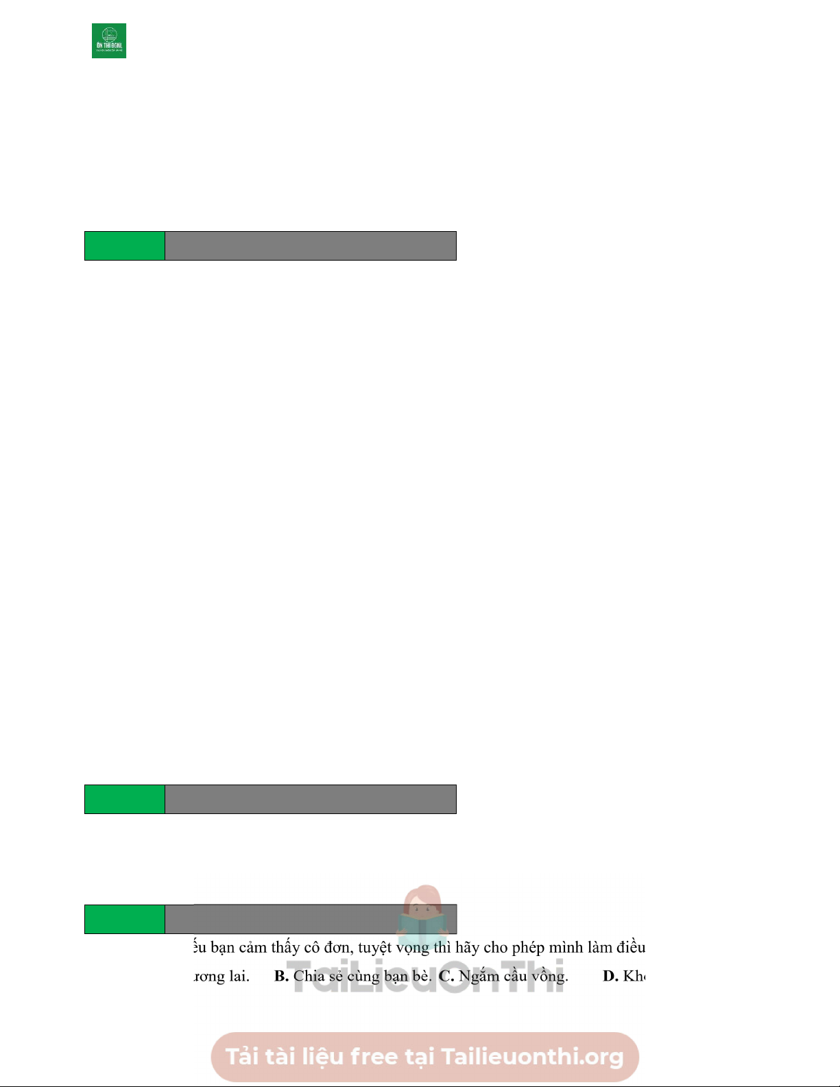trong nỗi ưu tư, vương vấn? A. Câu (1). B. Câu (2). C. Câu (3). D. Câu (4). Câu 53 Tailieuchuan.vn