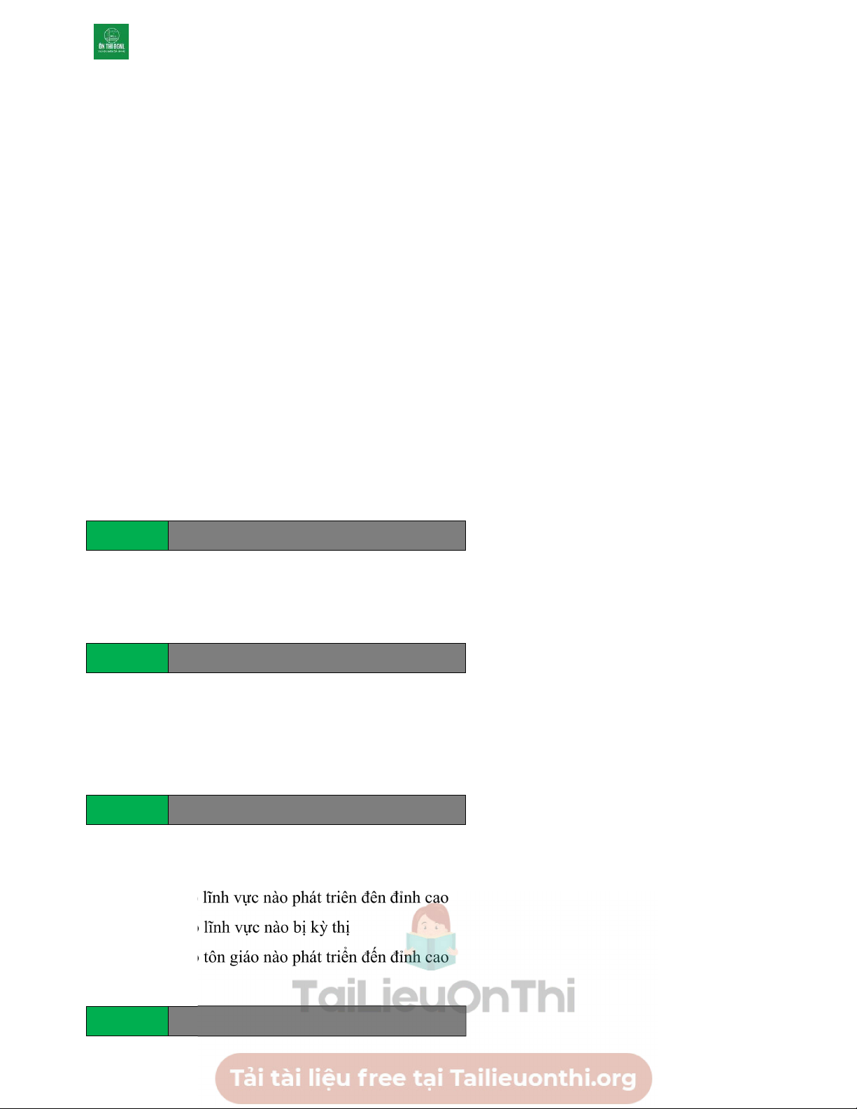 D. Không có tôn giáo nào phát triển đến đỉnh cao Câu 59