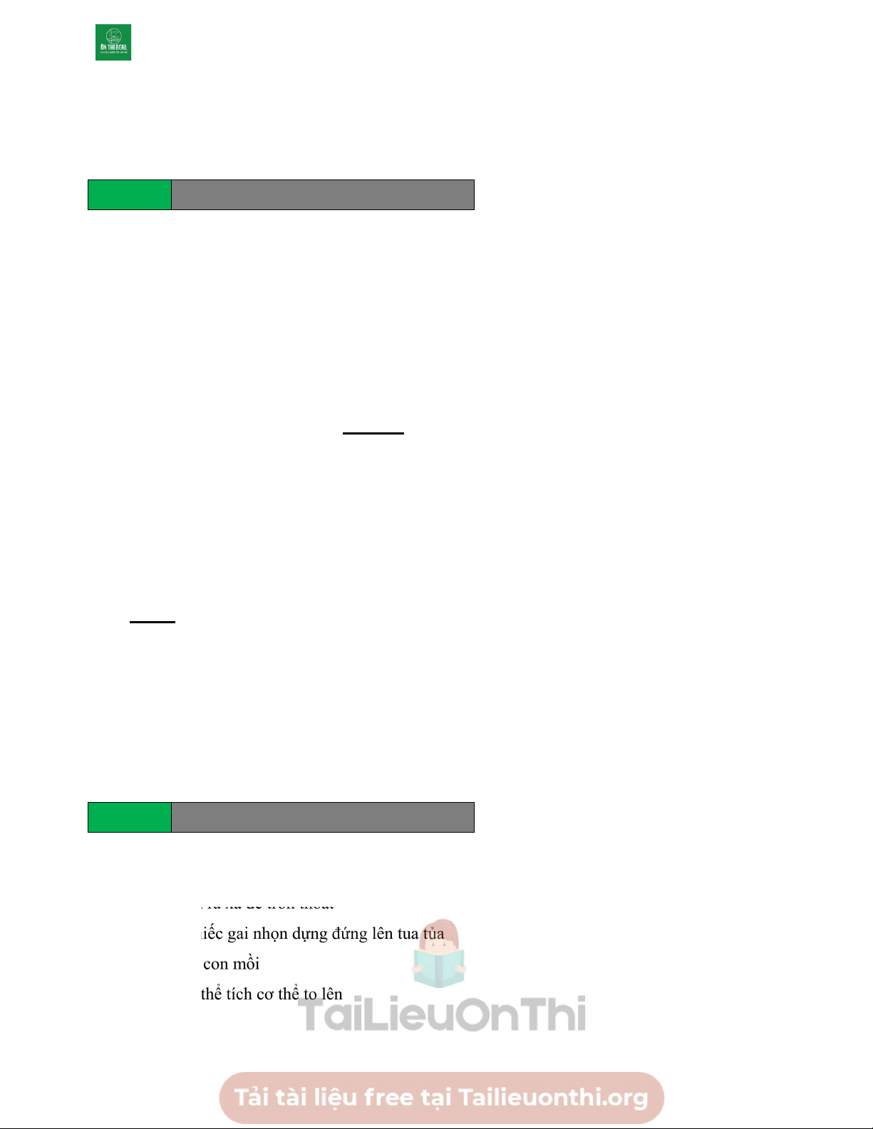 D. Lúc túi khí của con cá đã phình to Câu 65