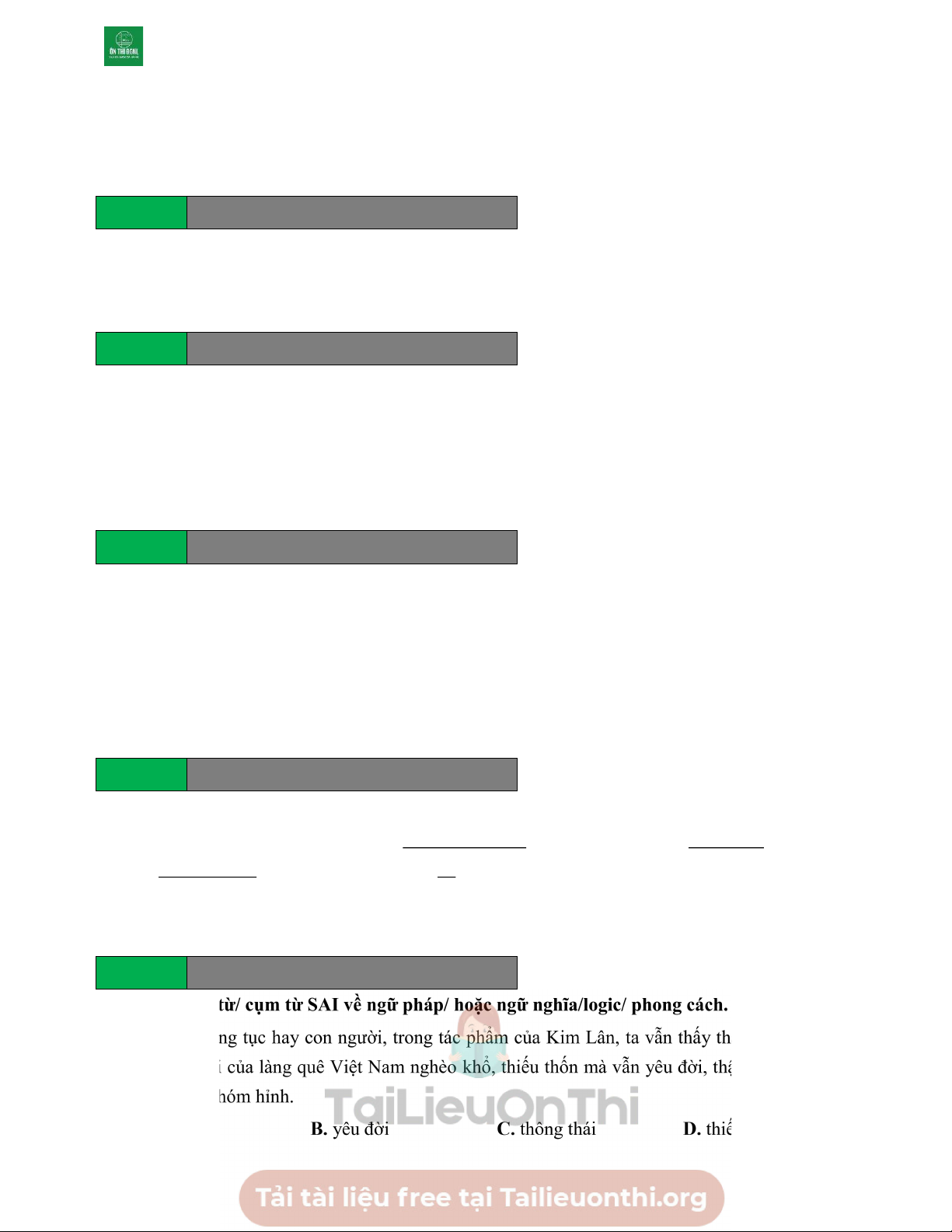 Lĩnh vực: Ngữ văn - Ngôn ngữ 50 câu hỏi - 60 phút