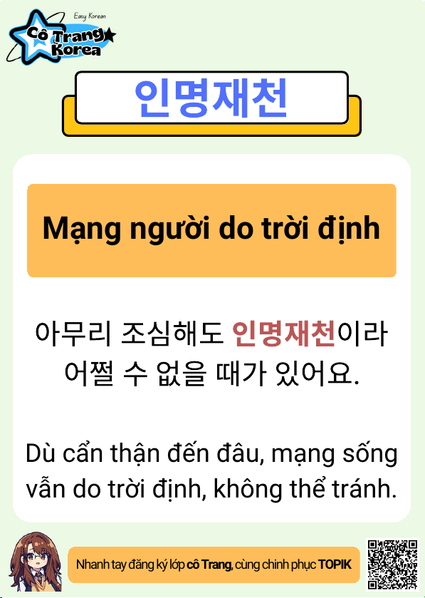 Nhanh tay đăng ký lớp cô Trang, cùng chinh phục TOPIK 인명재천