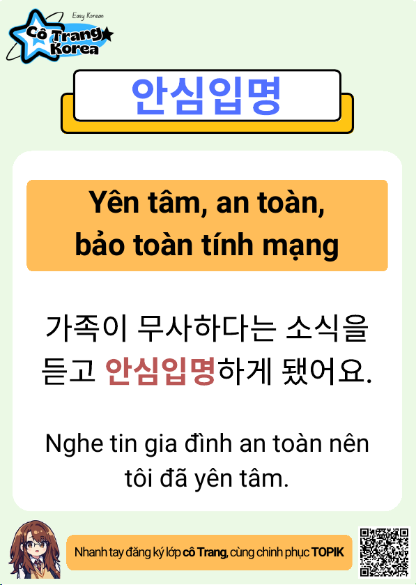 Nhanh tay đăng ký lớp cô Trang, cùng chinh phục TOPIK 안심입명 Yên tâm, an toàn,