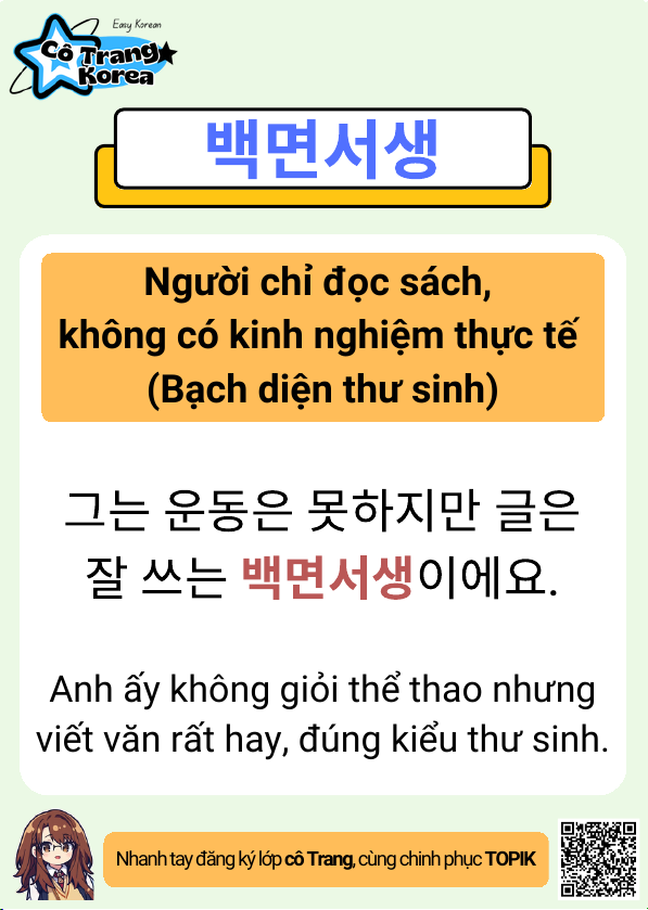 Nhanh tay đăng ký lớp cô Trang, cùng chinh phục TOPIK 백면서생