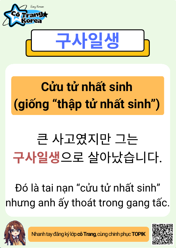 Nhanh tay đăng ký lớp cô Trang, cùng chinh phục TOPIK 구사일생 Cửu tử nhất sinh