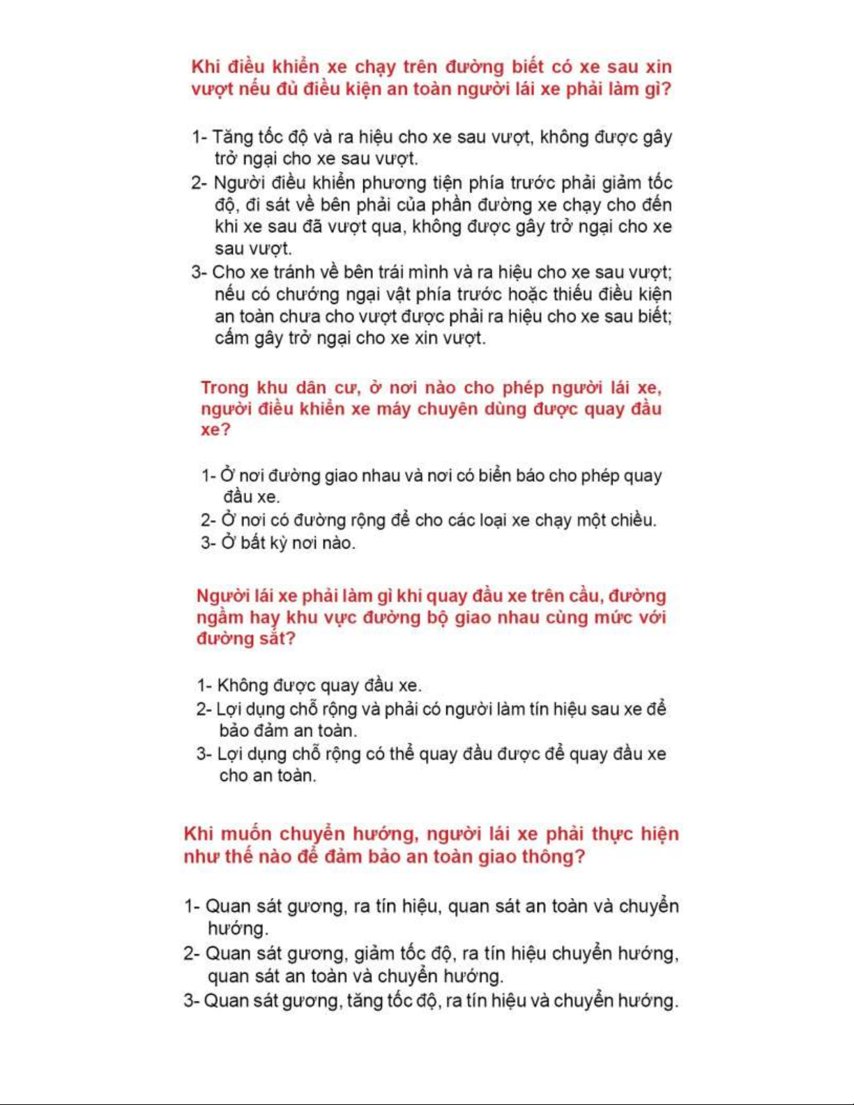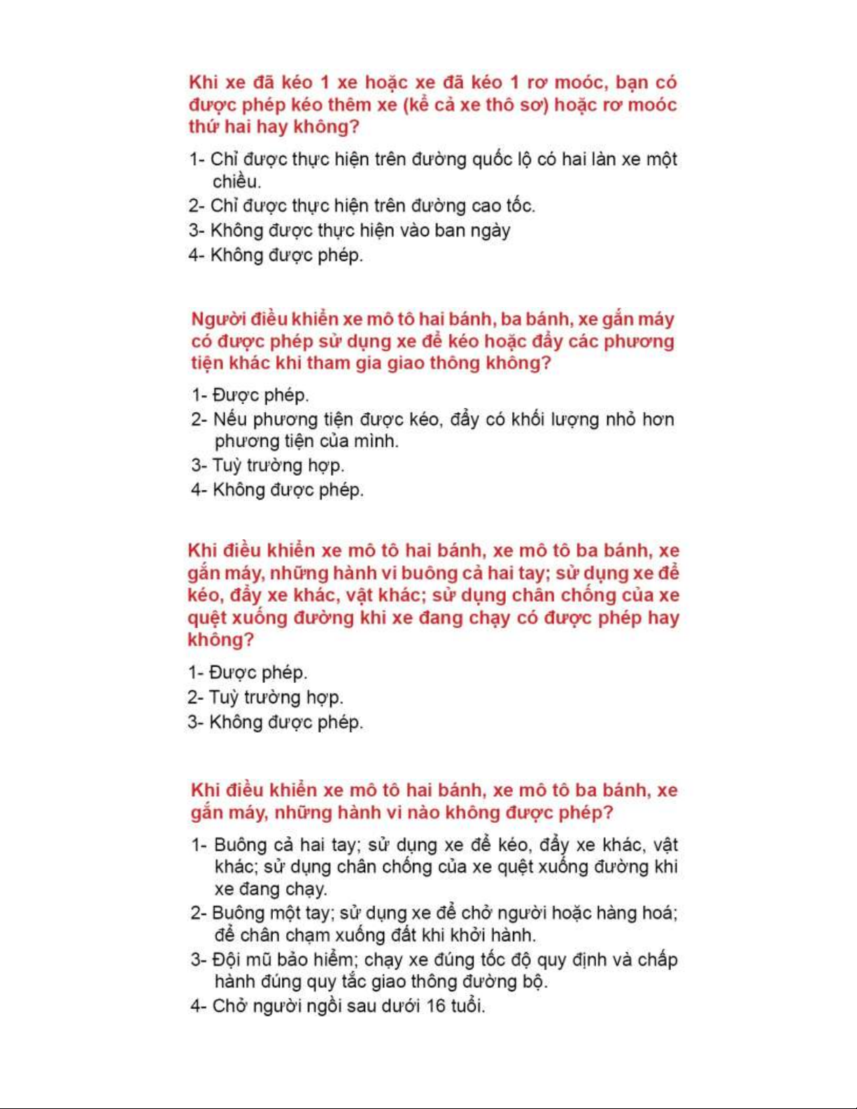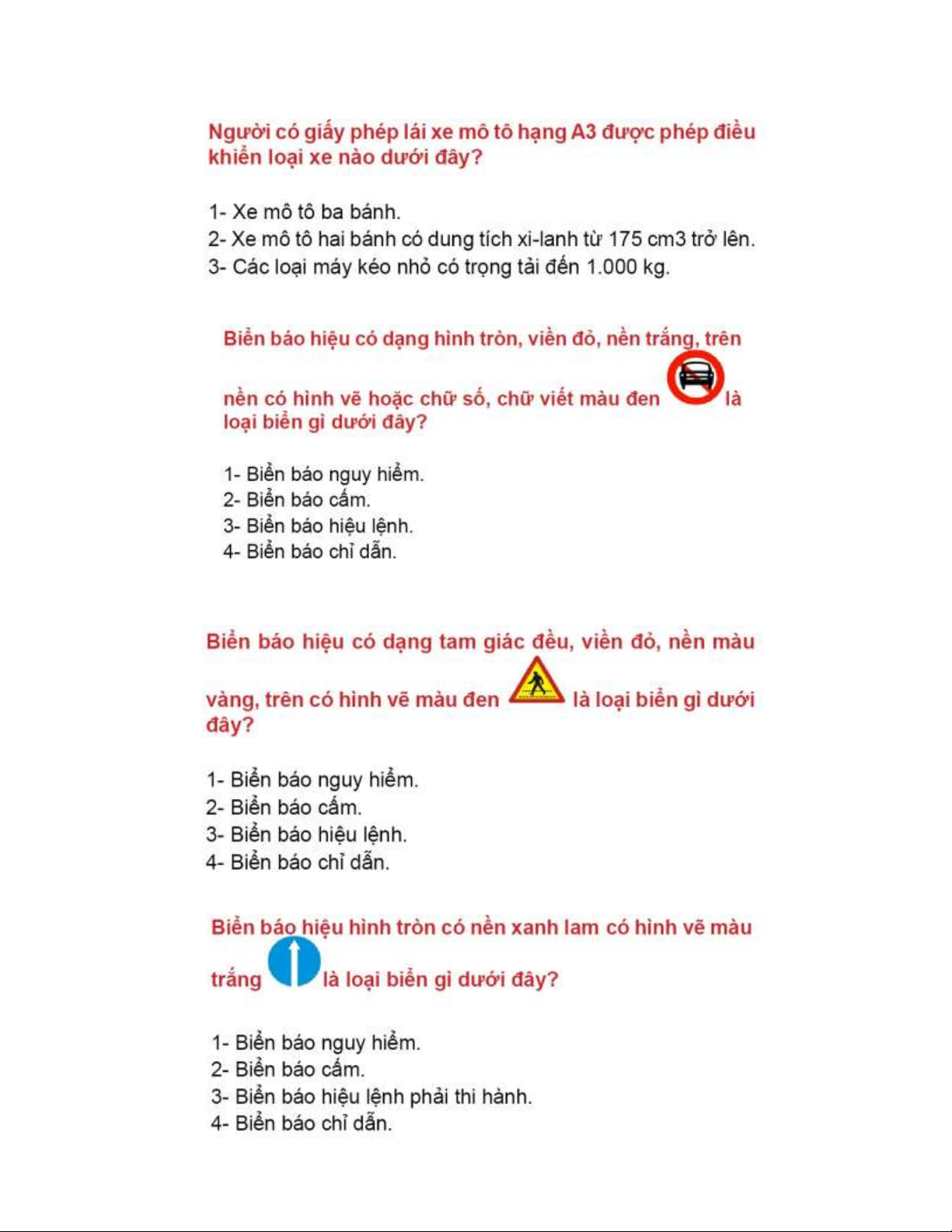 450 CÂU HỎI SÁT HẠCH LÁI XE HẠNG A VÀ ĐÁP ÁN